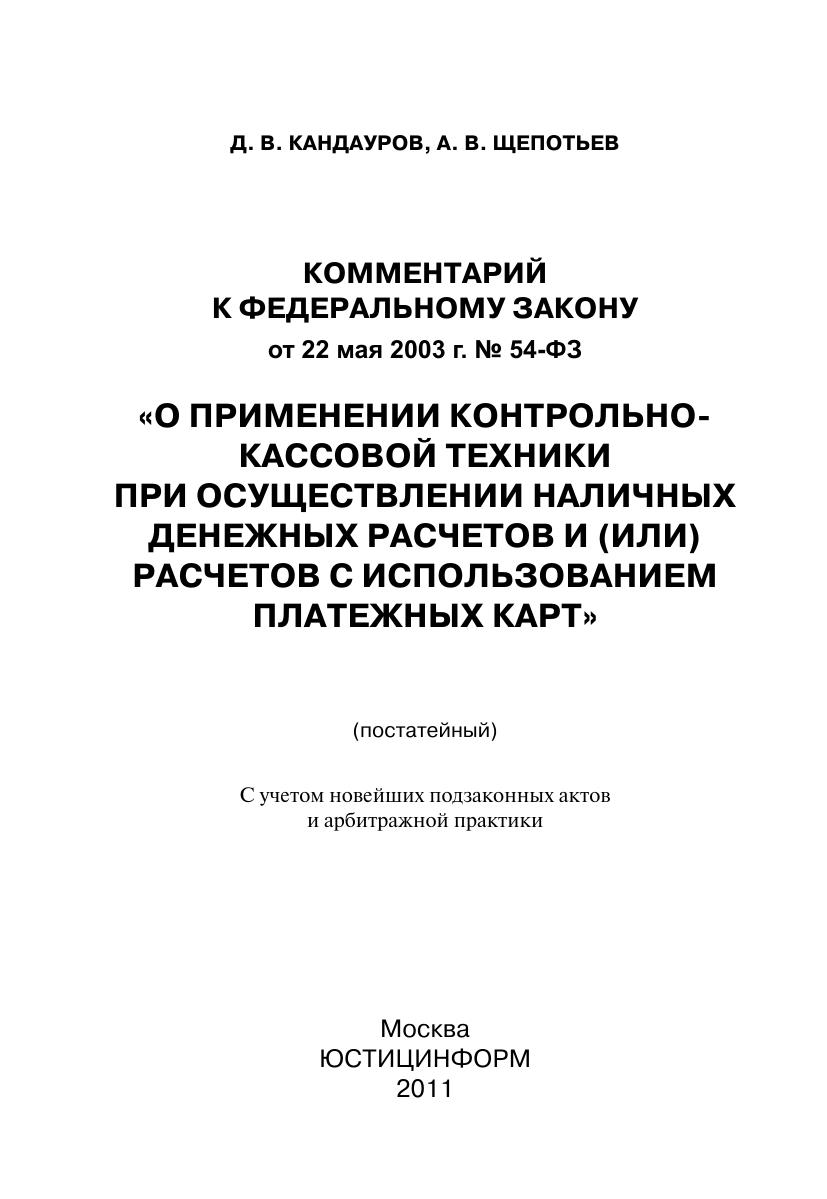 Комментарий к Федеральному закону от 22 мая 2003 г. № 54-ФЗ