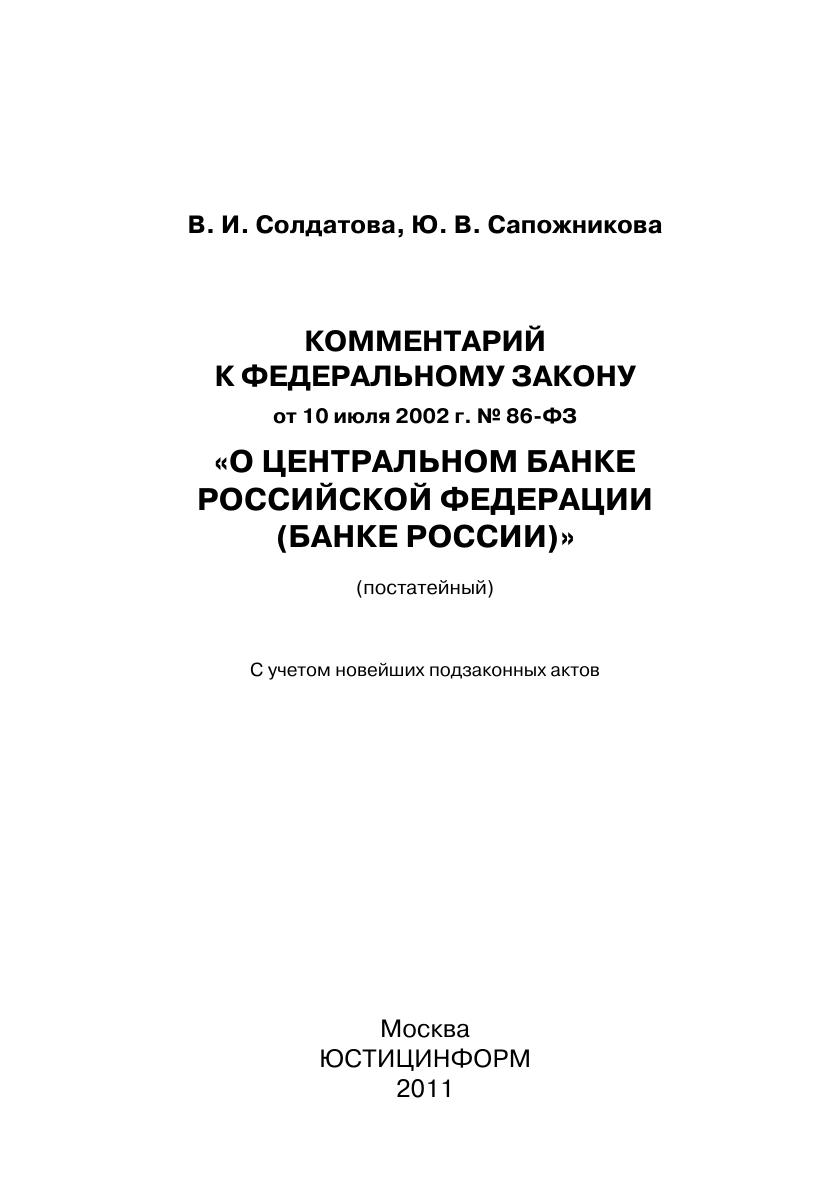Комментарий к Федеральному закону от 10 июля 2002 г. № 86-ФЗ «О Центральном банке Российской Федерации (Банке России)» (постатейный)