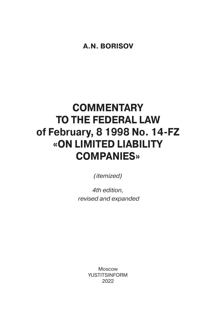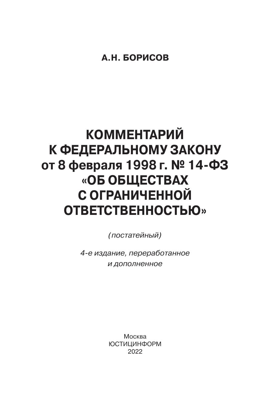 Комментарий к Федеральному закону от 8 февраля 1998 г. № 14-ФЗ «Об обществах с ограниченной ответственностью» (постатейный)