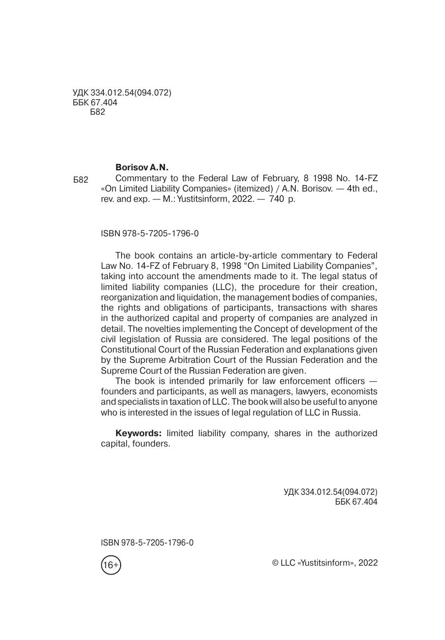 Книга предназначена прежде всего для правоприменителей — учредителей и участников, а также руководителей, юристов, экономистов и специалистов по налогообложению ООО. Книга также будет полезна всем, кто интересуется вопросами правой регламентации ООО в России.