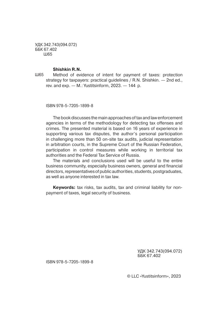 В книге рассматриваются основные подходы налоговых и правоохранительных органов в части методики выявления налоговых правонарушений и преступлений. Представленный материал основан на 16-летнем опыте сопровождения различных налоговых споров, личном участии автора в оспаривании более 50 выездных налоговых проверок, судебном представительстве в арбитражных судах, в Верховном суде РФ, участии в проведении контрольных мероприятий в период работы в территориальных налоговых органах и ФНС России.