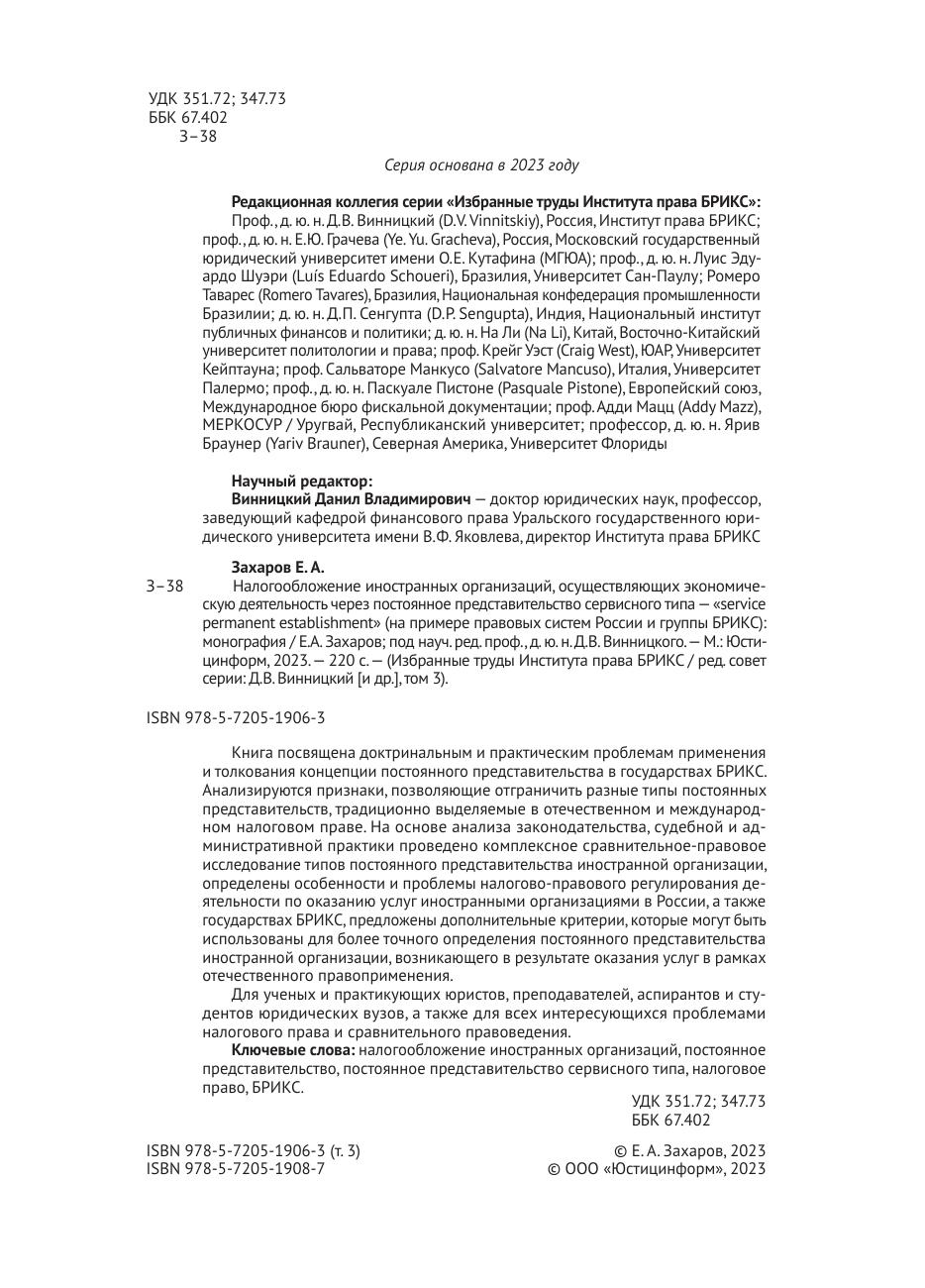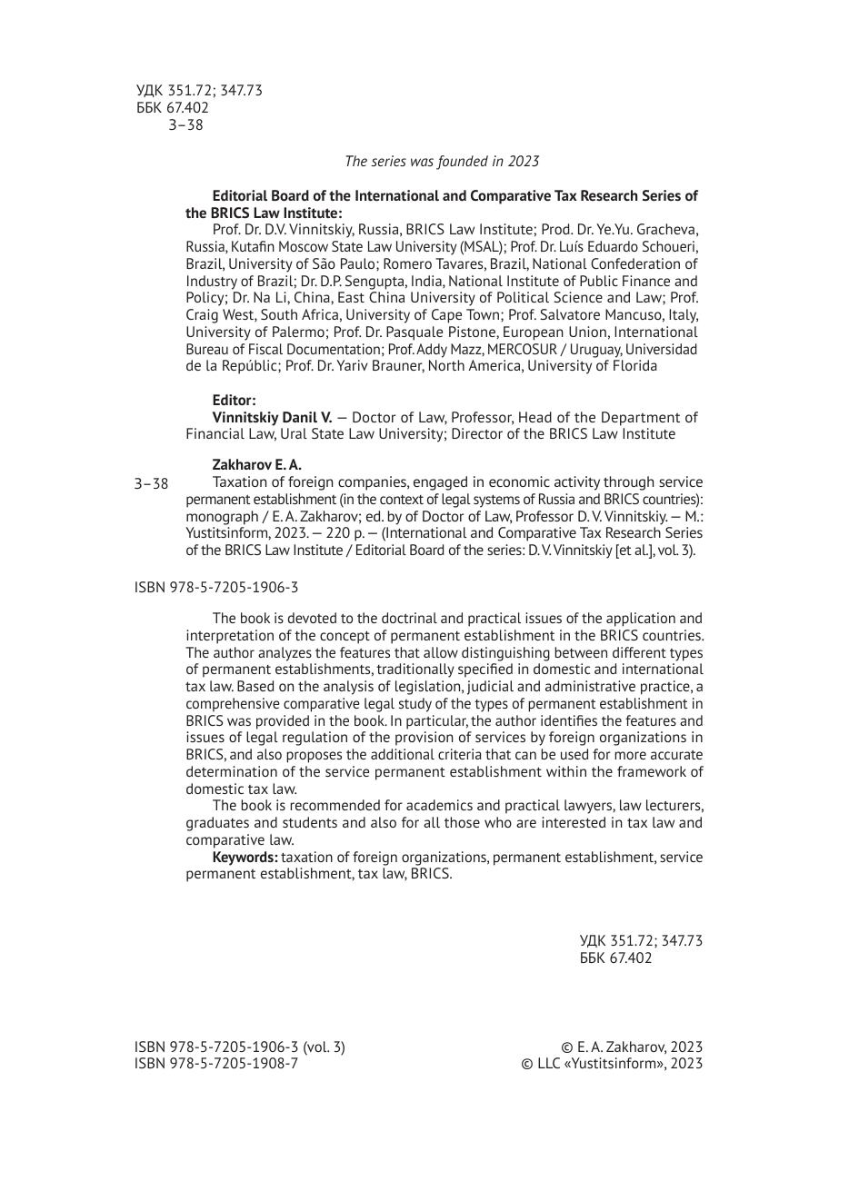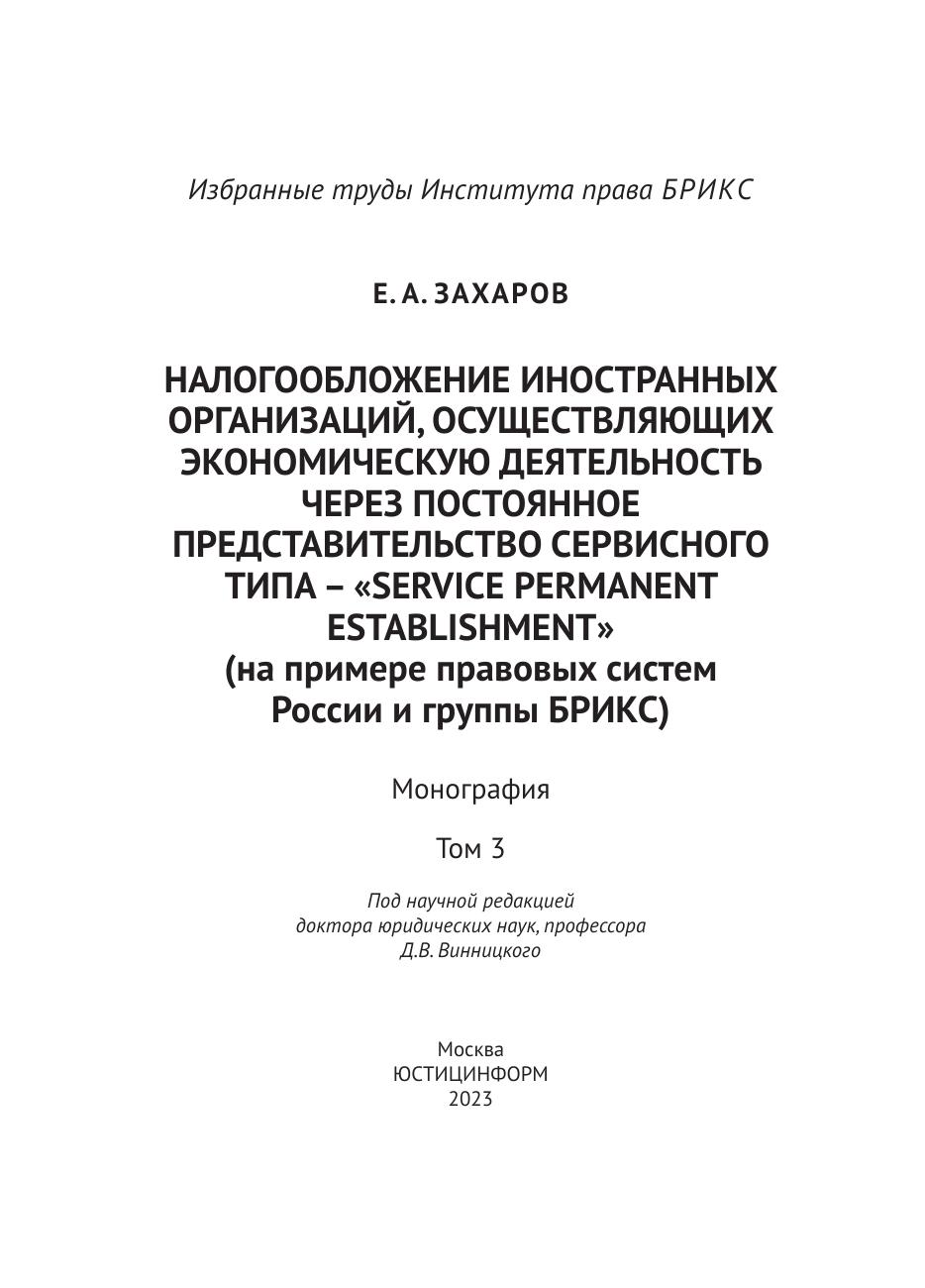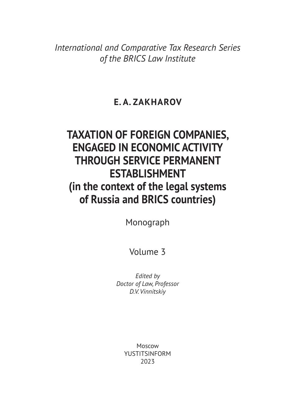 Налогообложение иностранных организаций, осуществляющих экономическую деятельность через постоянное представительство сервисного типа — «service permanent establishment» (на примере правовых систем России и группы БРИКС). Том 3