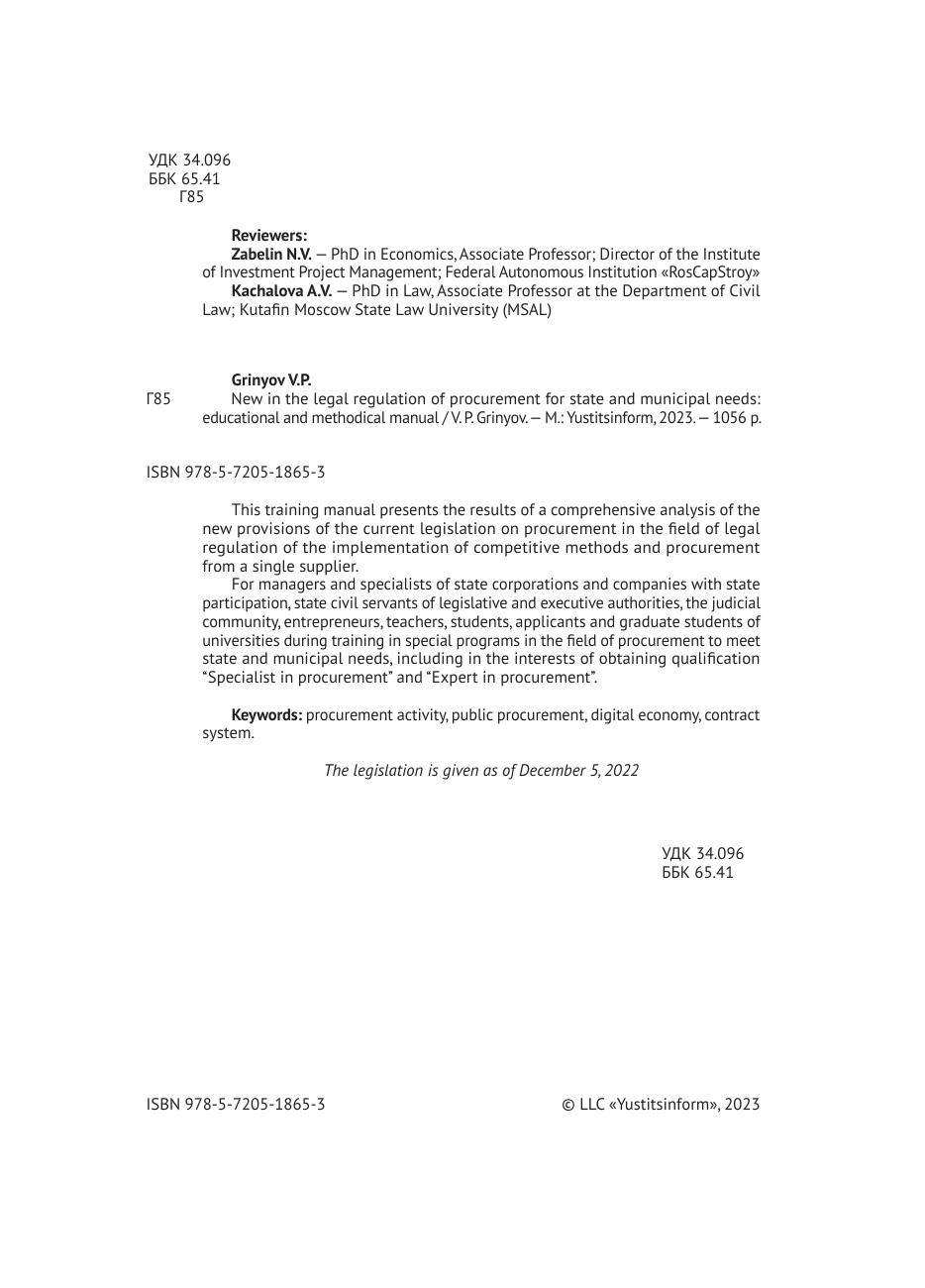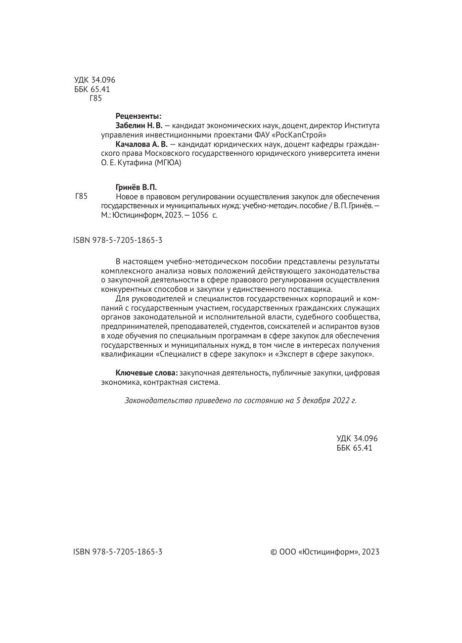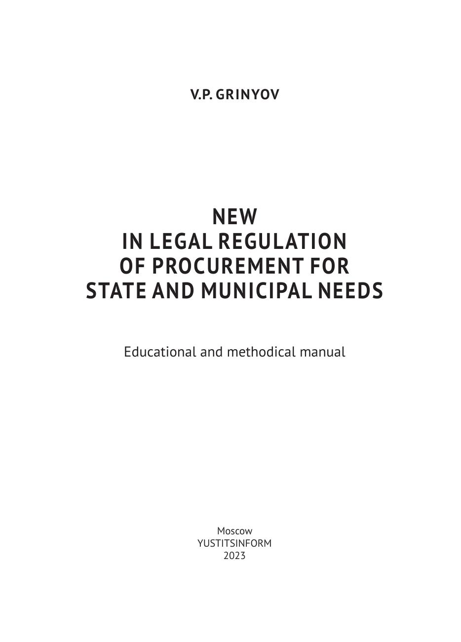 В настоящем учебно-методическом пособии представлены результаты комплексного анализа новых положений действующего законодательства о закупочной деятельности в сфере правового регулирования осуществления конкурентных способов и закупки у единственного поставщика. Для руководителей и специалистов государственных корпораций и компаний с государственным участием, государственных гражданских служащих органов законодательной и исполнительной власти, судебного сообщества, предпринимателей, преподавателей, студентов, соискателей и аспирантов вузов в ходе обучения по специальным программам в сфере закупок для обеспечения государственных и муниципальных нужд, в том числе в интересах получения квалификации «Специалист в сфере закупок» и «Эксперт в сфере закупок».