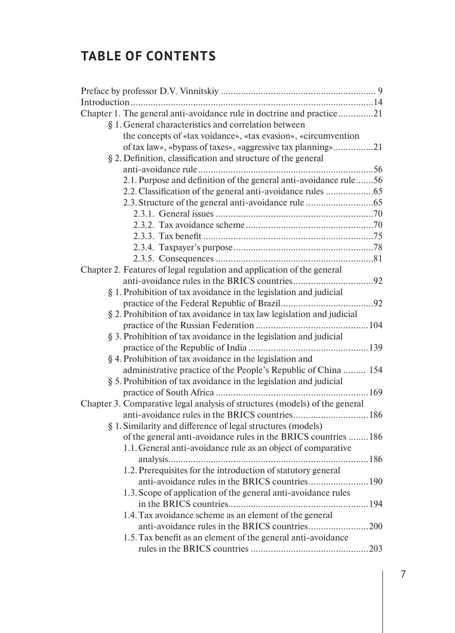Книга посвящена доктринальным и практическим проблемам применения и толкования общих правил о запрете обхода налогового закона в государствах БРИКС. Анализируются основные концепции, классификация и структура данного правила. На основе анализа обширного законодательного материала, судебной и административной практики, аналитических и статистических данных проведено комплексное сравнительное-правовое исследование моделей общего правила о запрете обхода налогового закона в государствах БРИКС, определены особенности и проблемы правового регулирования этого правила, предложены возможные пути сближения правовых конструкций общего правила о запрете обхода налогового закона в ходе сотрудничества государств БРИКС в сфере налогообложения. Для ученых и практикующих юристов, преподавателей, аспирантов и студентов юридических вузов, а также для всех интересующихся проблемами налогового права и сравнительного правоведения.