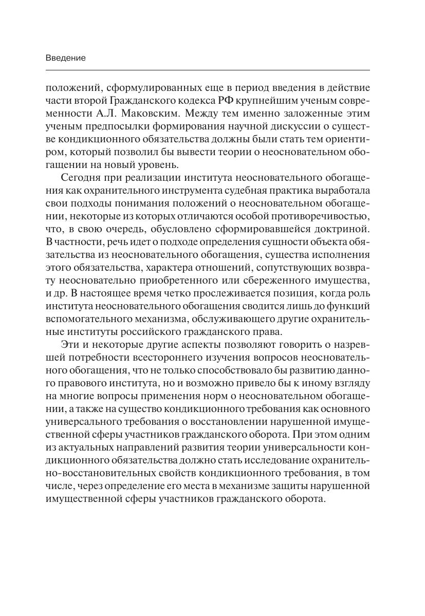 Данное издание представляет собой первое в отечественной правовой науке крупное научное исследование теоретических вопросов неосновательного обогащения.Автором предложено свое видение сущности отношений, возникающих из неосновательного обогащения, отличное от доктринального подхода. В работе предложено решение большинства спорных вопросов отечественной теории и практики неосновательного обогащения, основанное на глубоком анализе общетеоретических вопросов обязательственного права. Через построение теории исполнения кондикционного обязательства автор раскрывает существо некоторых категорий института неосновательного обогащения, относительно которых до настоящего времени отсутствует четкость их определения в виду их малоизученности.Издание предназначено для преподавателей, аспирантов, студентов юридических вузов и факультетов, практикующих юристов.