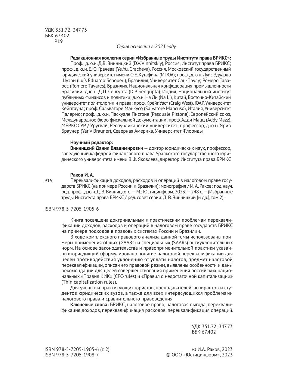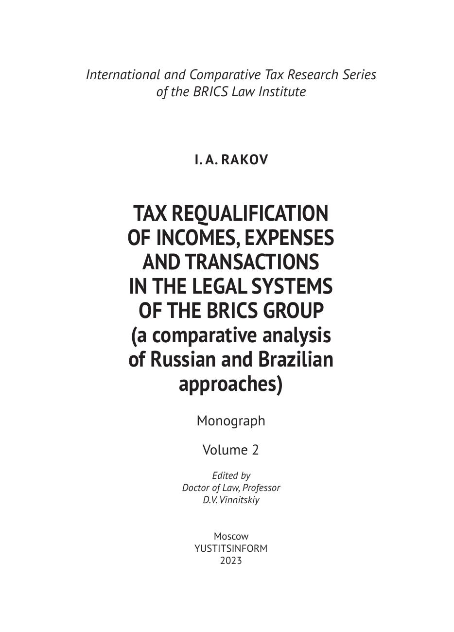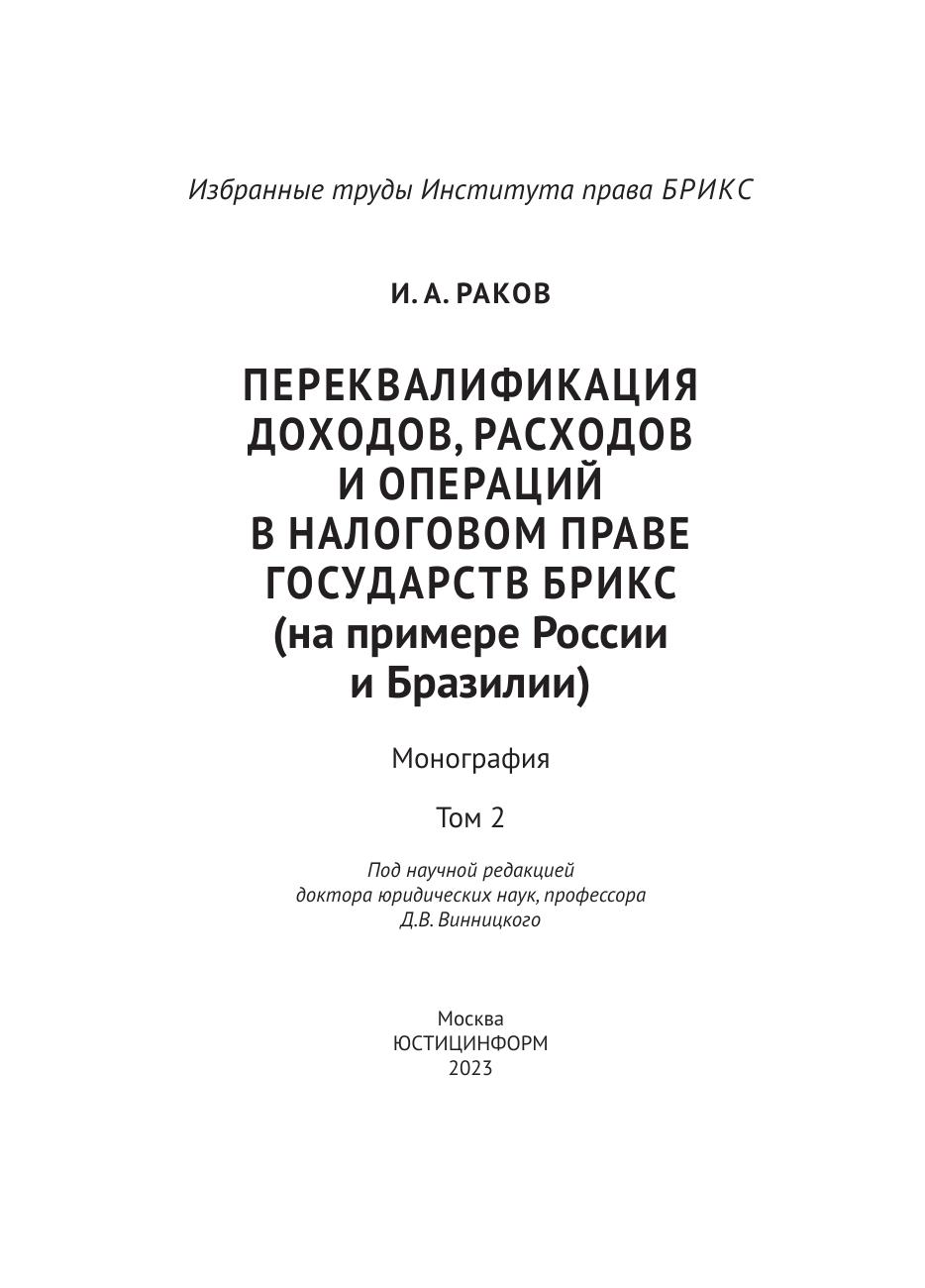 Переквалификация доходов, расходов и операций в налоговом праве государств БРИКС (на примере России и Бразилии): Том 2