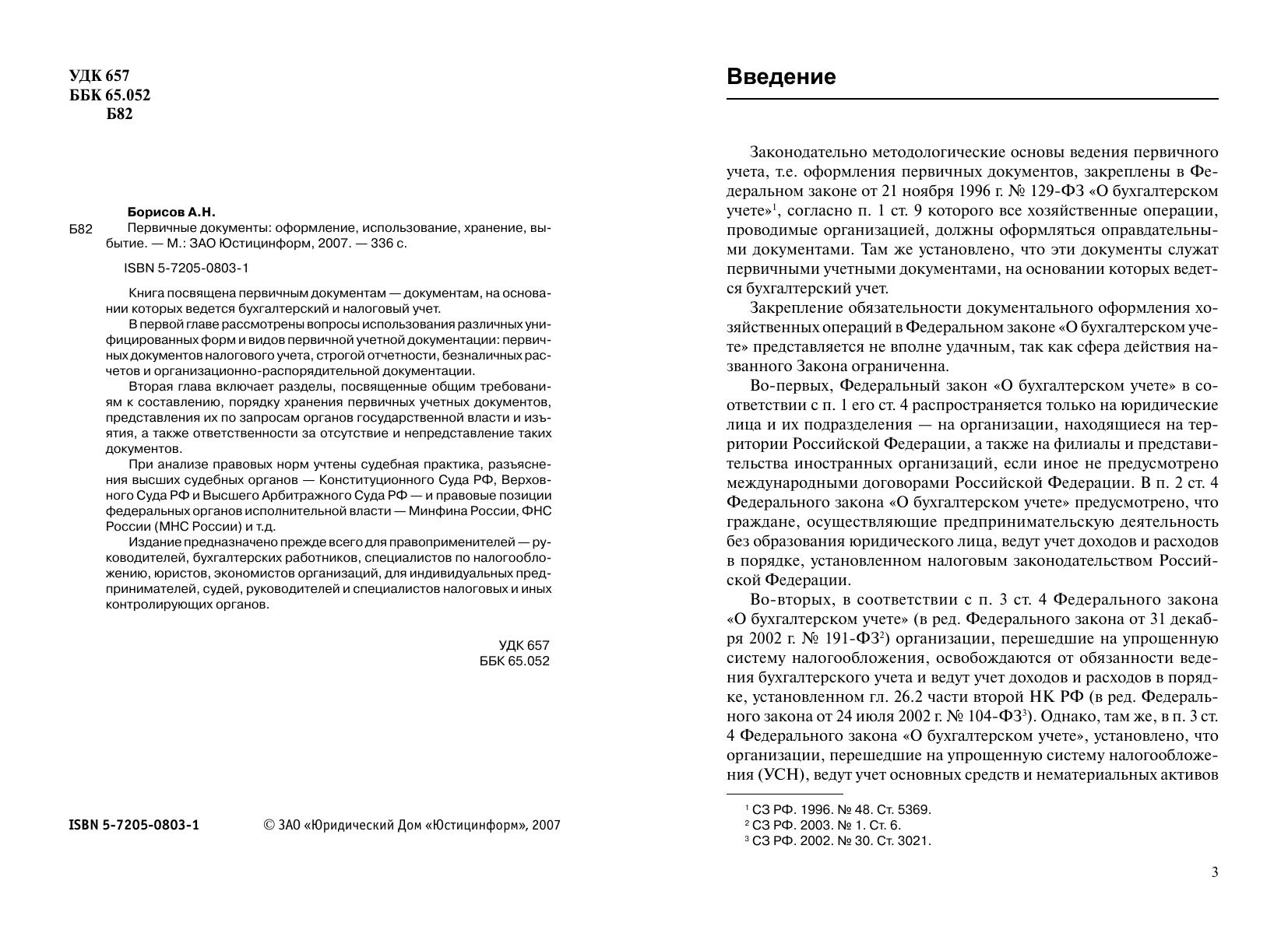 Книга посвящена первичным документам — документам, на основании которых ведется бухгалтерский и налоговый учет.В первой главе рассмотрены вопросы использования различных унифицированных форм и видов первичной учетной документации: первичных документов налогового учета, строгой отчетности, безналичных расчетов и организационно-распорядительной документации. Вторая глава включает разделы, посвященные общим требованиям к составлению, порядку хранения первичных учетных документов, представления их по запросам органов государственной власти и изъятия, а также ответственности за отсутствие и непредставление таких документов.При анализе правовых норм учтены судебная практика, разъяснения высших судебных органов — Конституционного Суда РФ, Верховного Суда РФ и Высшего Арбитражного Суда РФ — и правовые позиции федеральных органов исполнительной власти — Минфина России, ФНС России (МНС России) и т.д.