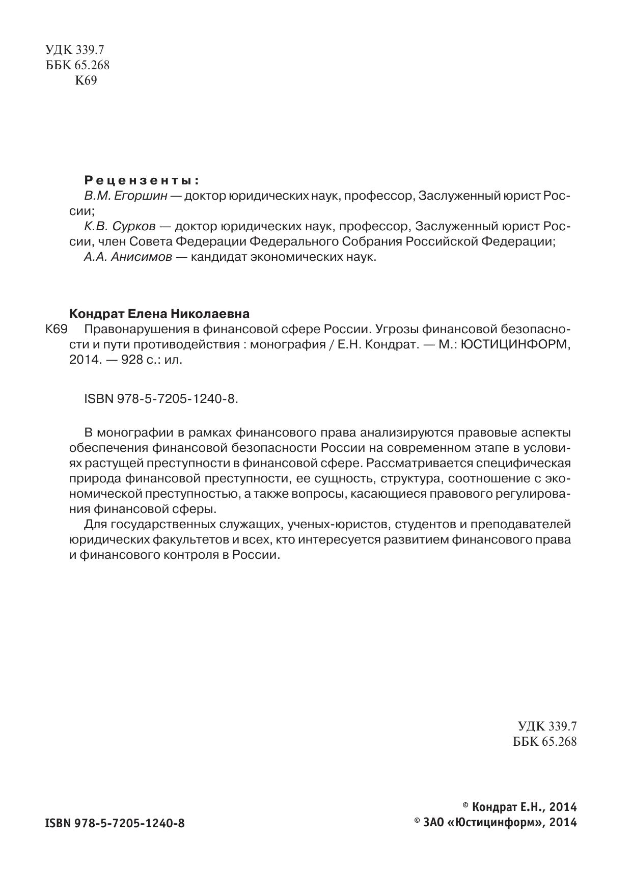 Правонарушения в финансовой сфере России. Угрозы финансовой безопасности и пути противодействия: монография