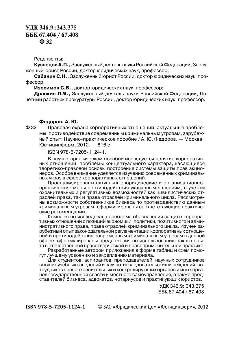 Правовая охрана корпоративных отношений: актуальные проблемы, противодействие современным криминальным угрозам, зарубежный опыт: Научно-практическое пособие