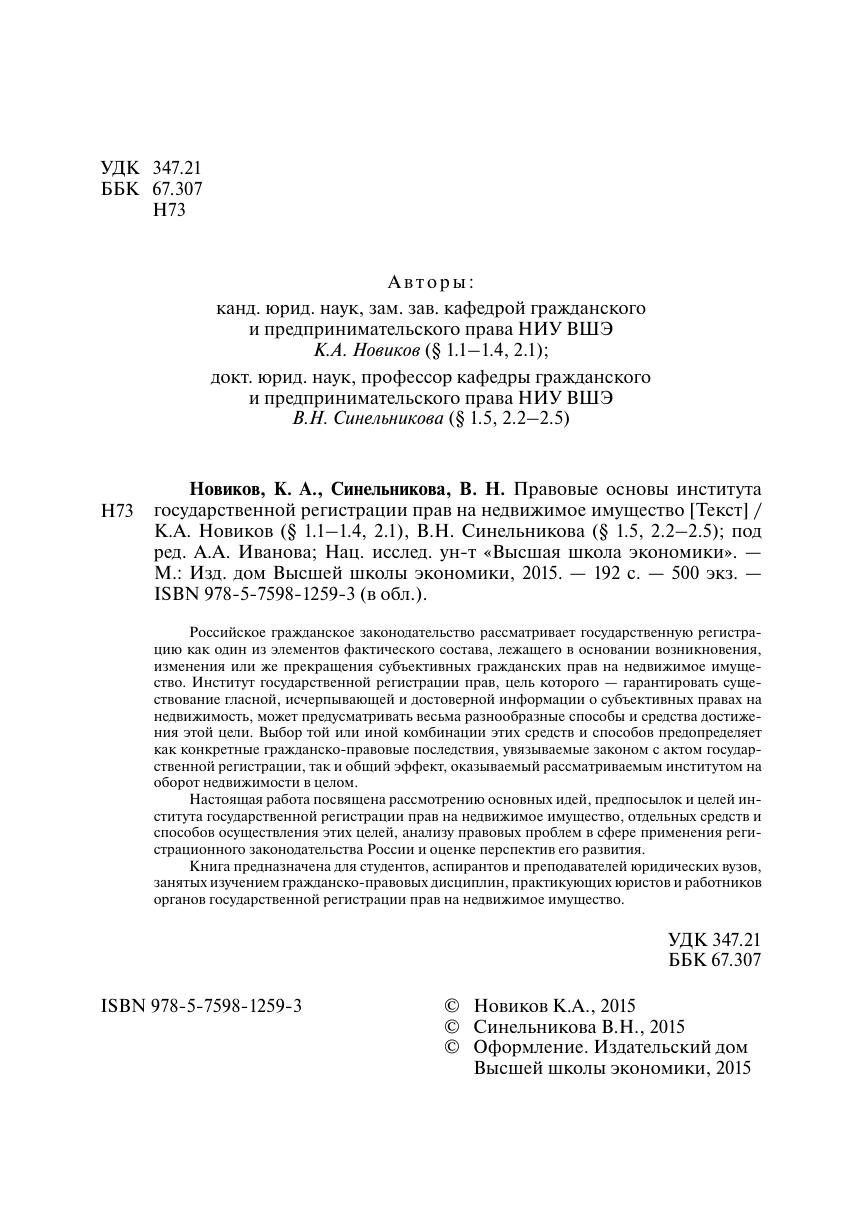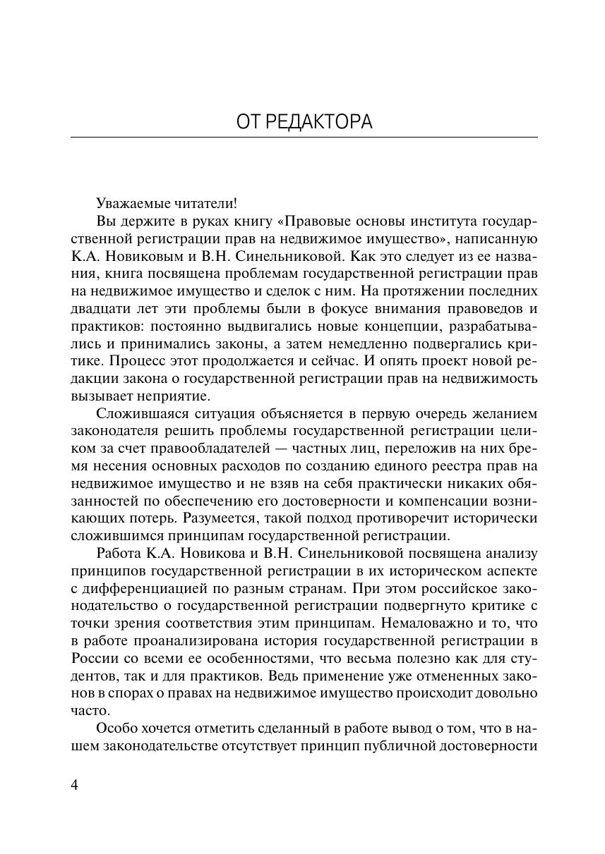 Российское гражданское законодательство рассматривает государственную регистрацию как один из элементов фактического состава, лежащего в основании возникновения, изменения или же прекращения субъективных гражданских прав на недвижимое имущество. Институт государственной регистрации прав, цель которого — гарантировать существование гласной, исчерпывающей и достоверной информации о субъективных правах на недвижимость, может предусматривать весьма разнообразные способы и средства достижения этой цели. Выбор той или иной комбинации этих средств и способов предопределяет как конкретные гражданско-правовые последствия, увязываемые законом с актом государственной регистрации, так и общий эффект, оказываемый рассматриваемым институтом на оборот недвижимости в целом. Настоящая работа посвящена рассмотрению основных идей, предпосылок и целей института государственной регистрации прав на недвижимое имущество, отдельных средств и способов осуществления этих целей, анализу правовых проблем в сфере применения регистрационного законодательства России и оценке перспектив его развития. Книга предназначена для студентов, аспирантов и преподавателей юридических вузов, занятых изучением гражданско-правовых дисциплин, практикующих юристов и работников органов государственной регистрации прав на недвижимое имущество.
