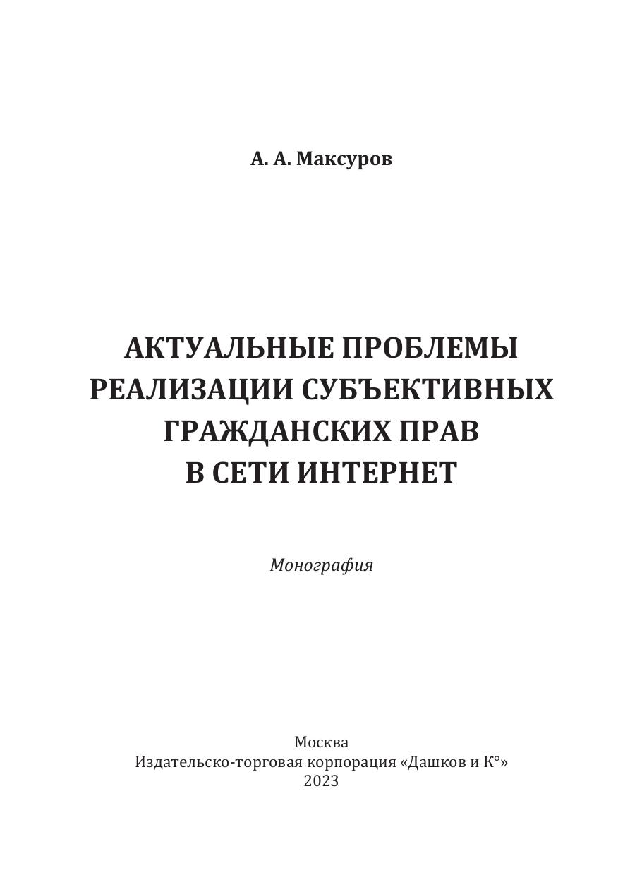 Актуальные проблемы реализации субъективных гражданских прав в сети интернет