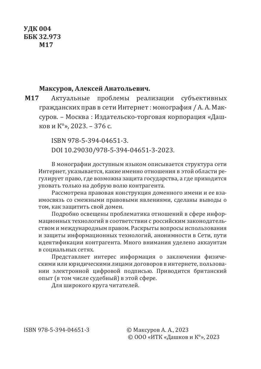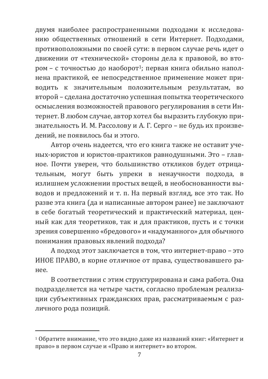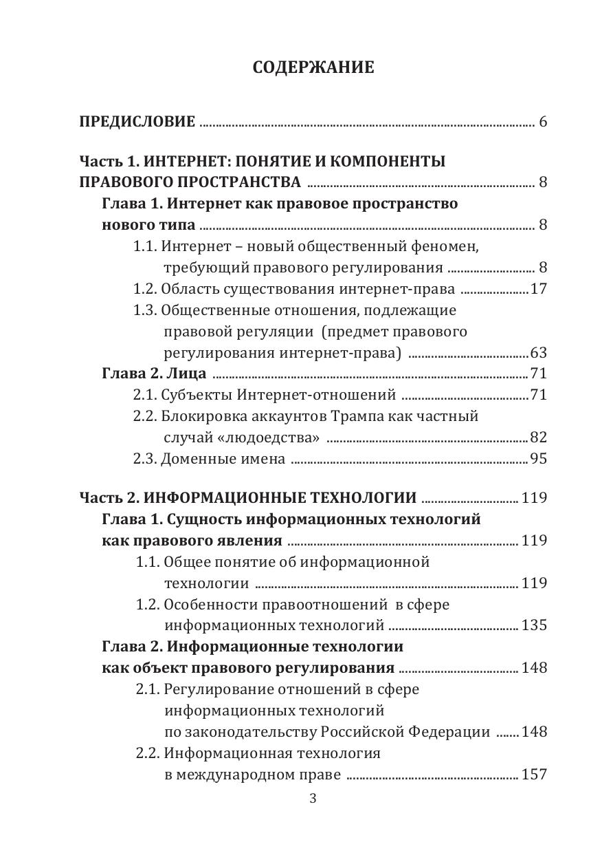 Подробно освещены проблематика отношений в сфере информационных технологий в соответствии с российским законодательством и международным правом. Раскрыты вопросы использования и защиты информационных технологий, анонимности в Сети, пути идентификации контрагента. Много внимания уделено аккаунтам в социальных сетях.