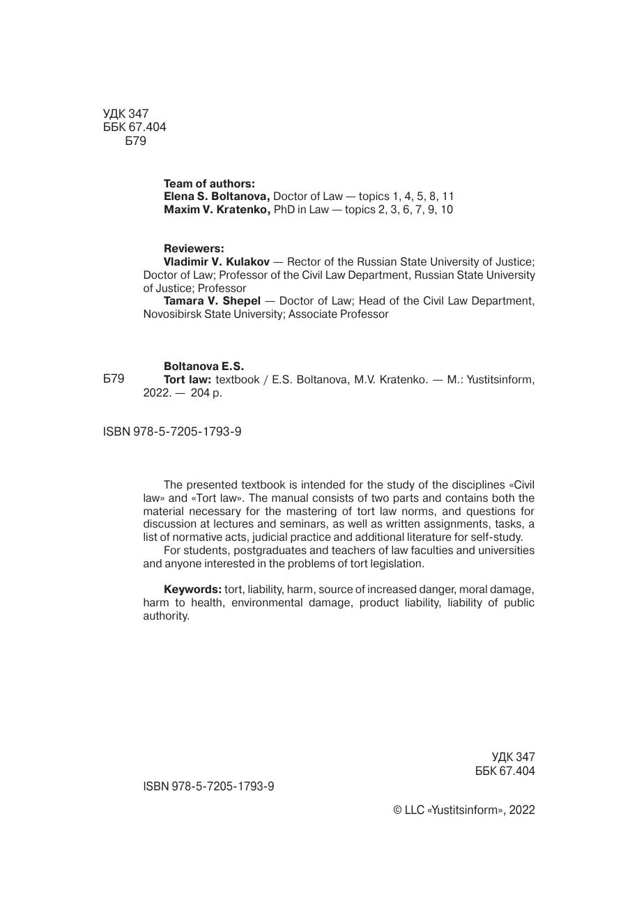 Для студентов, аспирантов и преподавателей юридических факультетов и вузов и всех интересующихся проблемами деликтного законодательства.