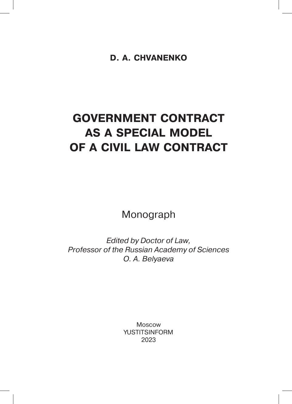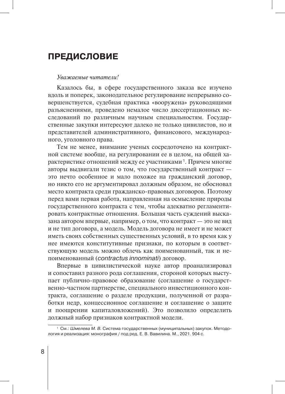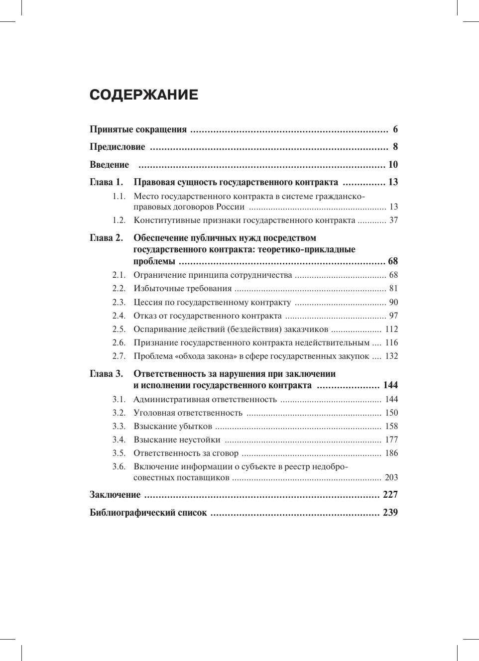 Предлагаемая читателю книга посвящена исследованию правовых вопросов в сфере государственных и муниципальных закупок. В ней анализируются проблемы, возникающие при заключении и исполнении государственных (муниципальных) контрактов, начиная с вопроса о месте этого соглашения в нашей системе гражданско-правовых договоров и заканчивая ответственностью за нарушения. Данное издание сможет заинтересовать как практикующих юристов (судей, юрисконсультов, адвокатов, сотрудников антимонопольных органов), так и иных специалистов, связанных с государственными и муниципальными закупками (контрактных управляющих, членов комиссий по закупкам и др.).