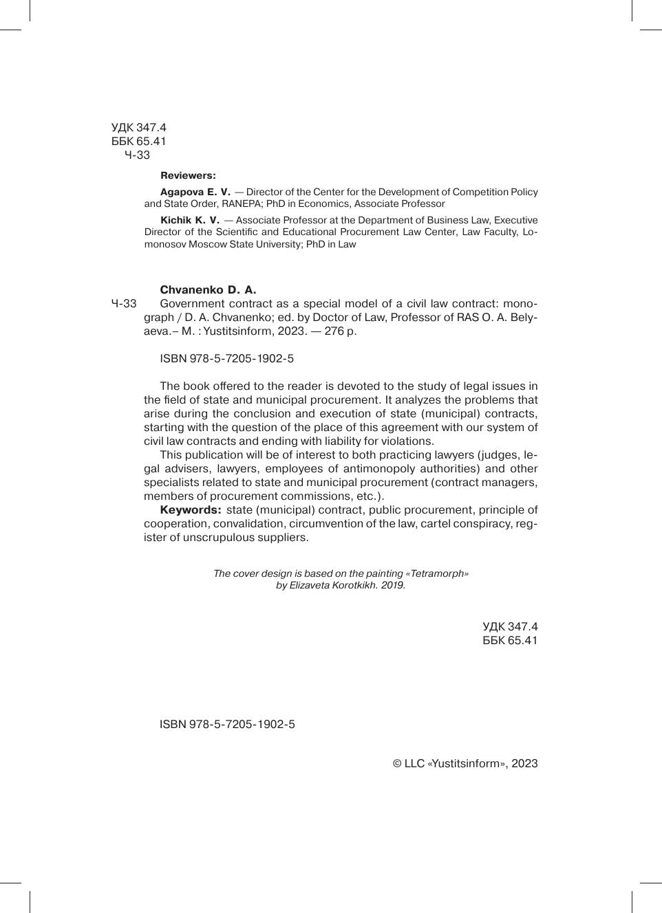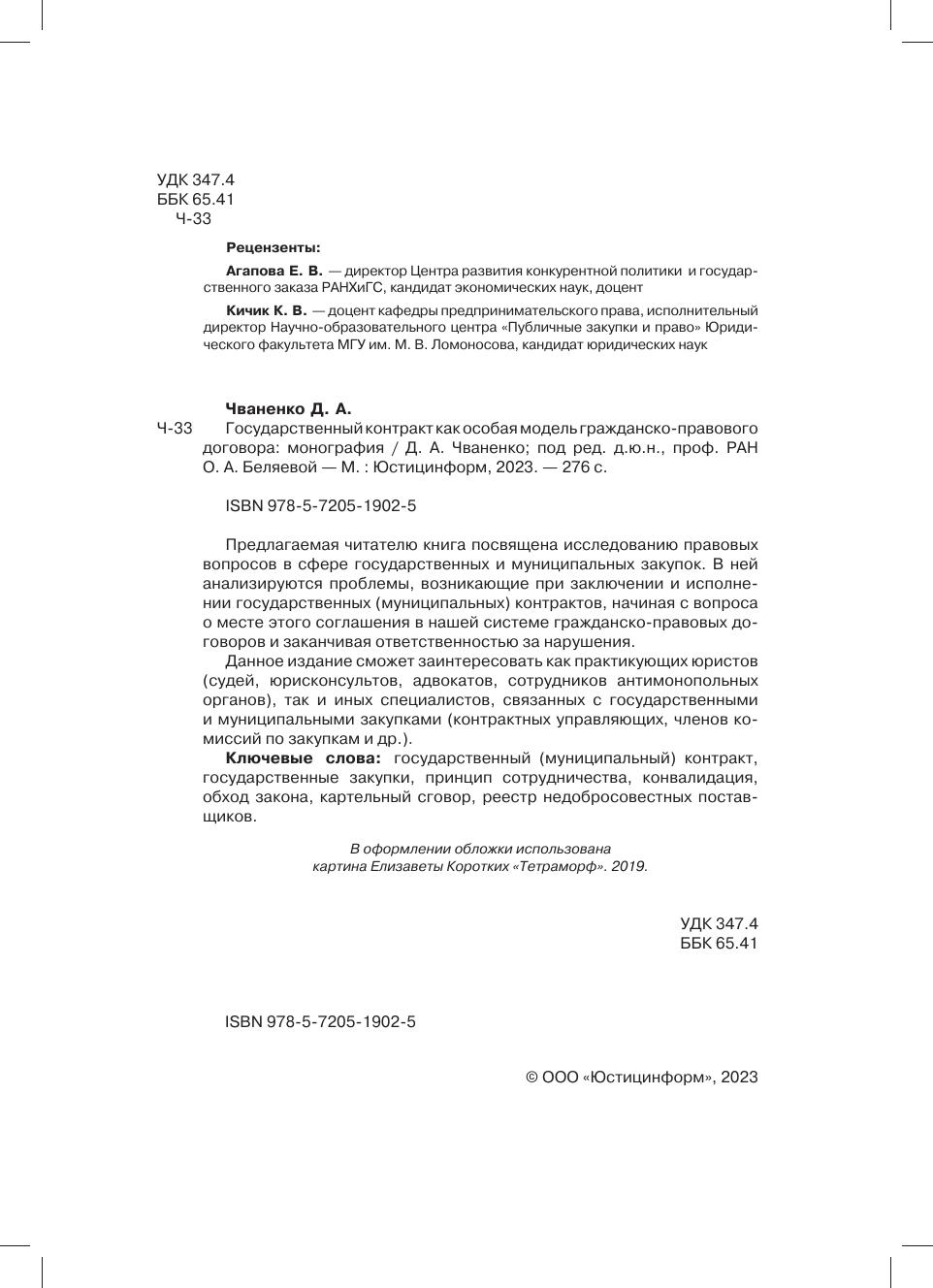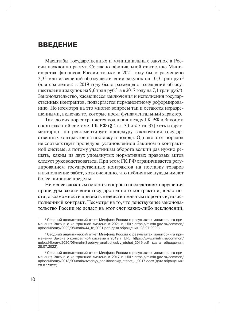 Предлагаемая читателю книга посвящена исследованию правовых вопросов в сфере государственных и муниципальных закупок. В ней анализируются проблемы, возникающие при заключении и исполнении государственных (муниципальных) контрактов, начиная с вопроса о месте этого соглашения в нашей системе гражданско-правовых договоров и заканчивая ответственностью за нарушения. Данное издание сможет заинтересовать как практикующих юристов (судей, юрисконсультов, адвокатов, сотрудников антимонопольных органов), так и иных специалистов, связанных с государственными и муниципальными закупками (контрактных управляющих, членов комиссий по закупкам и др.).