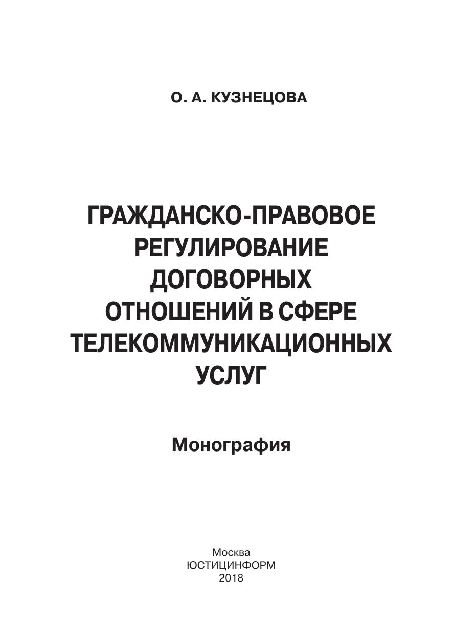 Гражданско-правовое регулирование договорных отношений в сфере телекоммуникационных услуг