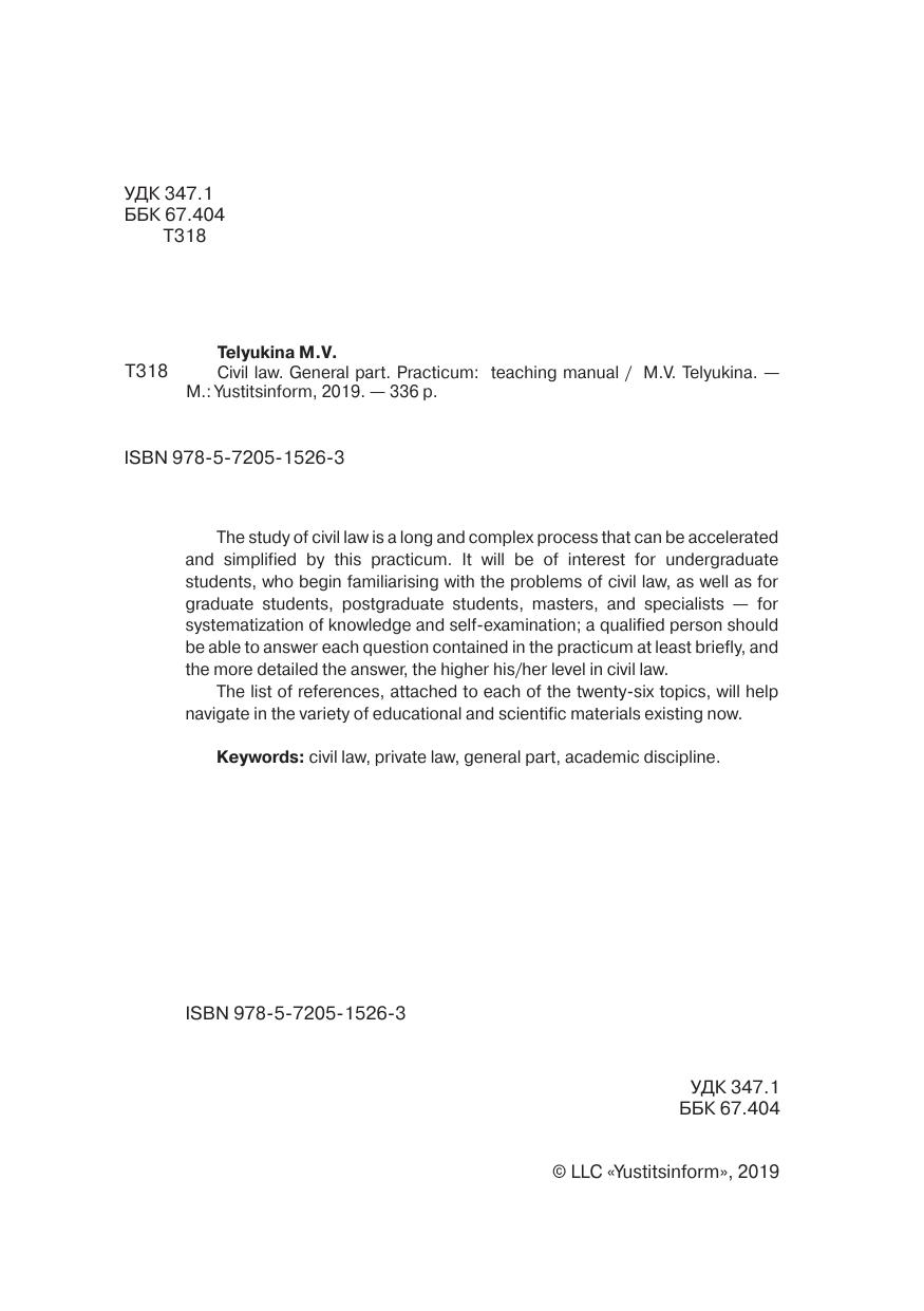 цивилистики, так и для магистрантов, аспирантов, магистров, специалистов — для систематизации материала и самопроверки — квалифицированный специалист должен уметь ответить хотя бы коротко, но на каждый