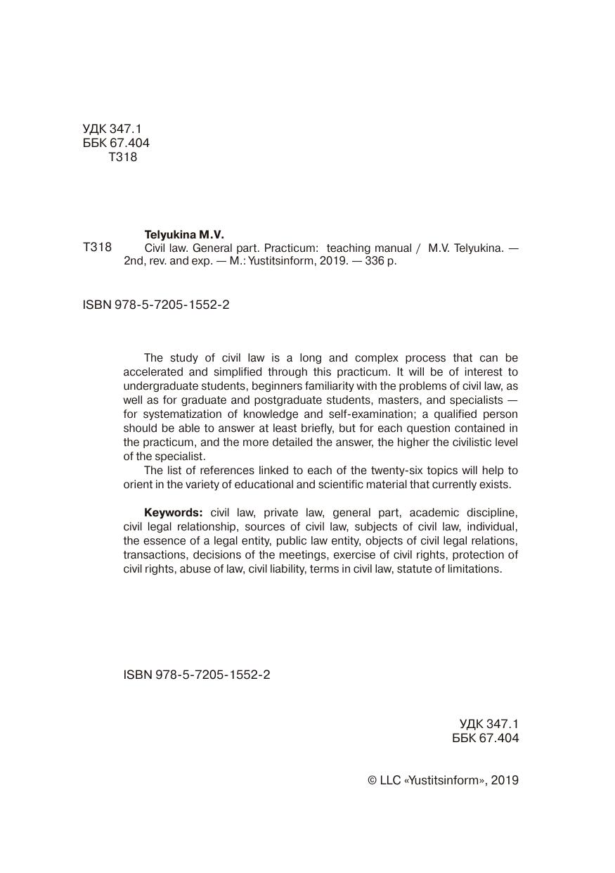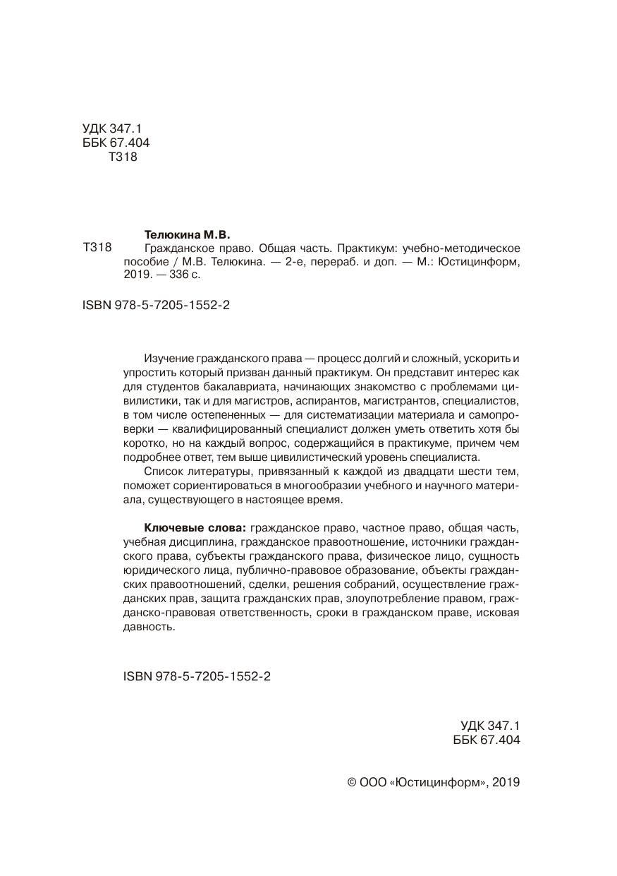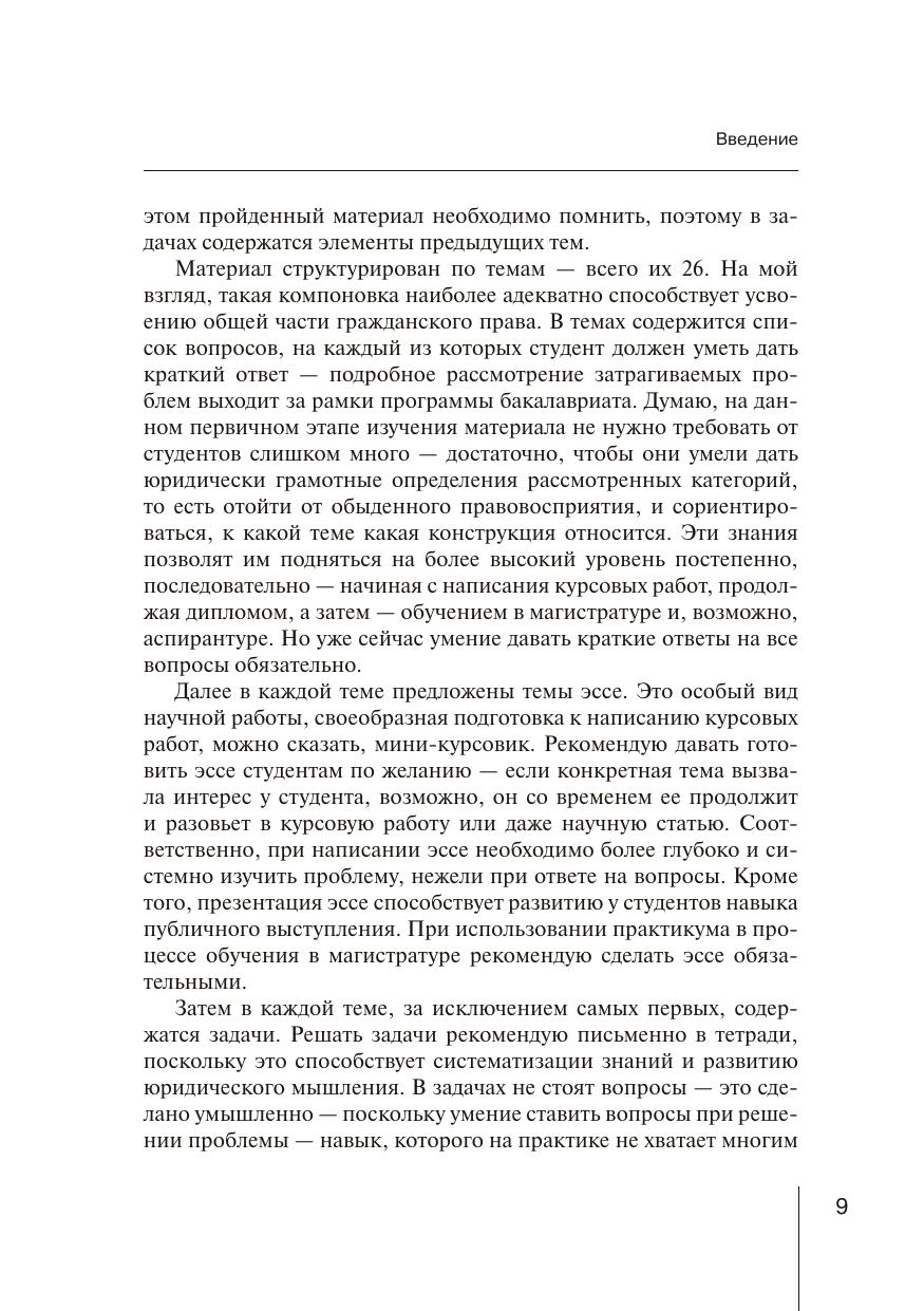 Изучение гражданского права — процесс долгий и сложный, ускорить и упростить который призван данный практикум. Он представит интерес как для студентов бакалавриата, начинающих знакомство с проблемами цивилистики, так и для магистров, аспирантов, магистрантов, специалистов, в том числе остепененных — для систематизации материала и самопроверки — квалифицированный специалист должен уметь ответить хотя бы коротко, но на каждый вопрос, содержащийся в практикуме, причем чем