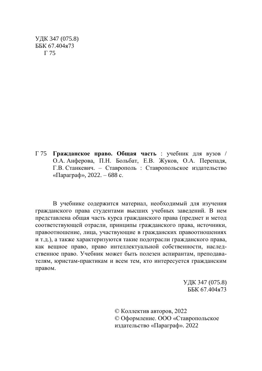 Авторы: Анферова О. А., Больбат П. Н., Жуков Е. В., Перепадя О. А., Станкевич Г. В.