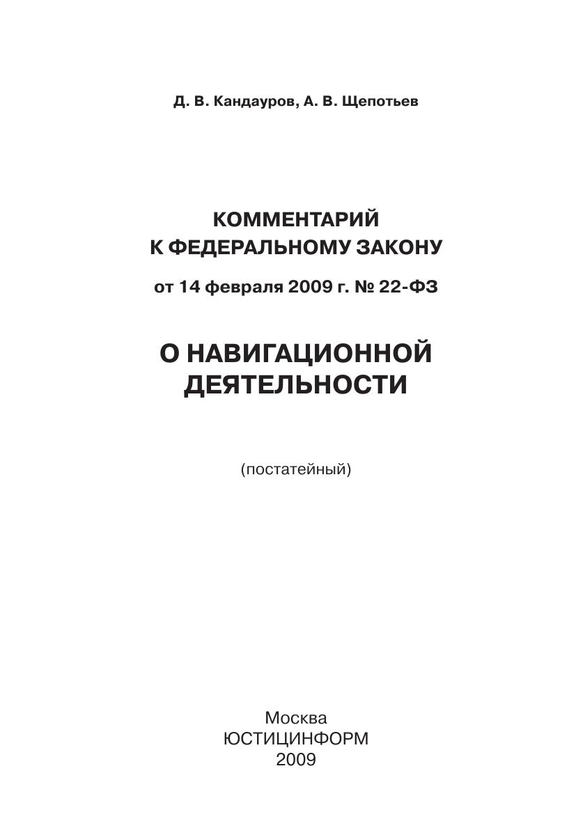Комментарий к Федеральному закону от 14 февраля 2009 г. № 22-ФЗ «О навигационной деятельности» : (постатейный)