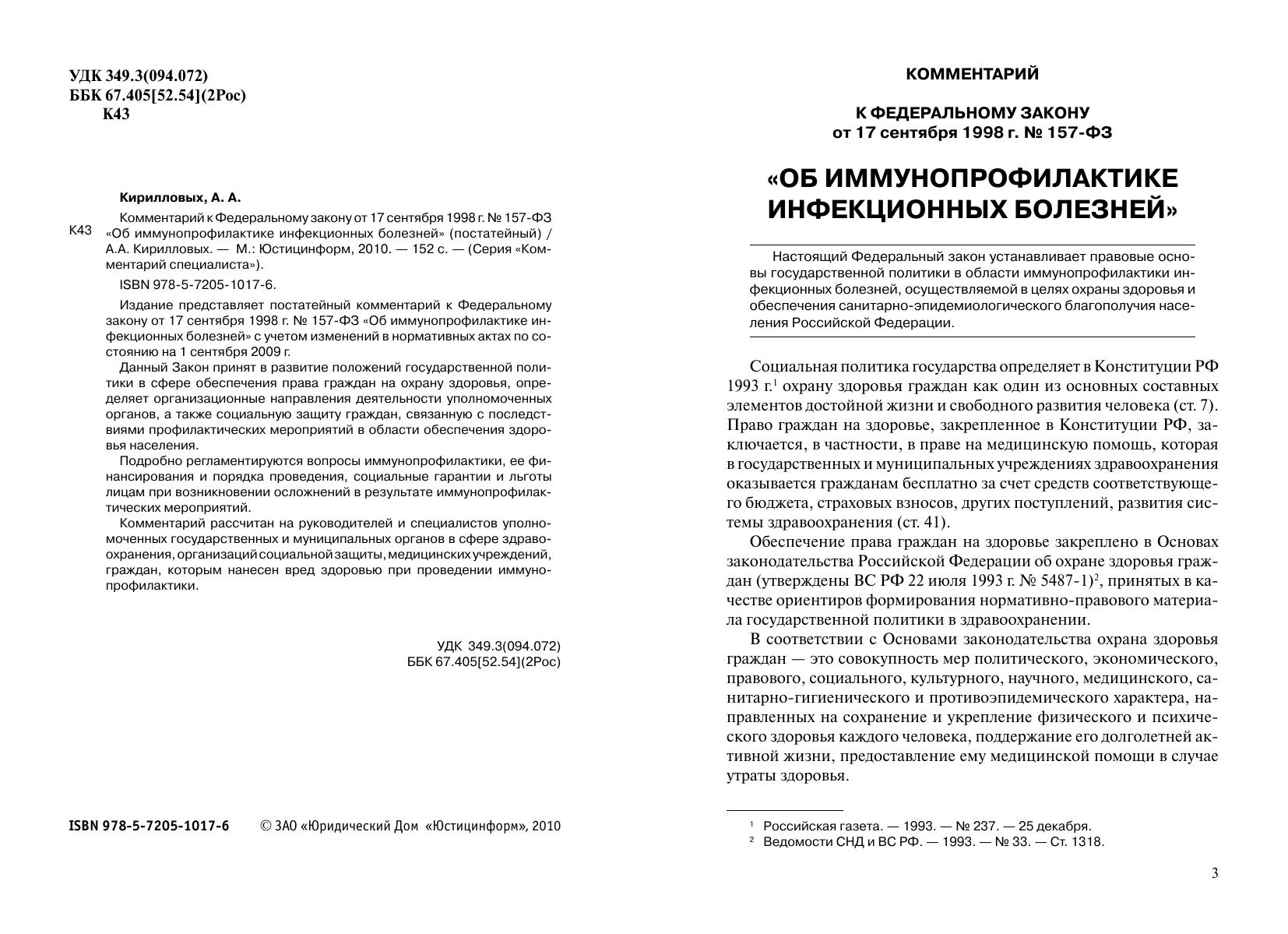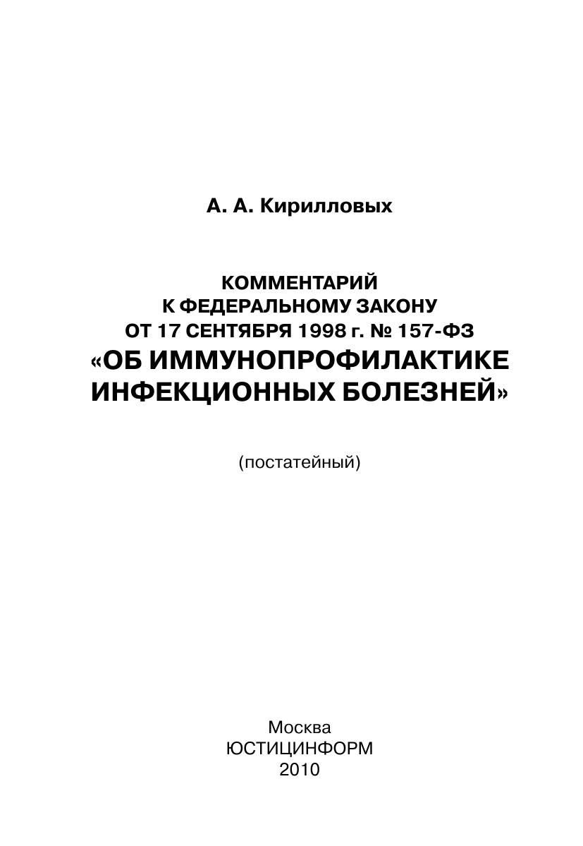 Комментарий к Федеральному закону от 17 сентября 1998 г. № 157-ФЗ «Об иммунопрофилактике инфекционных болезней» (постатейный)