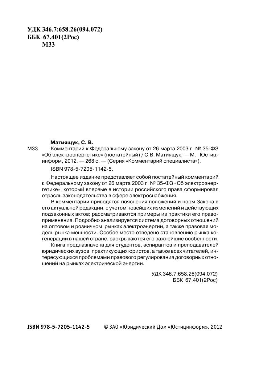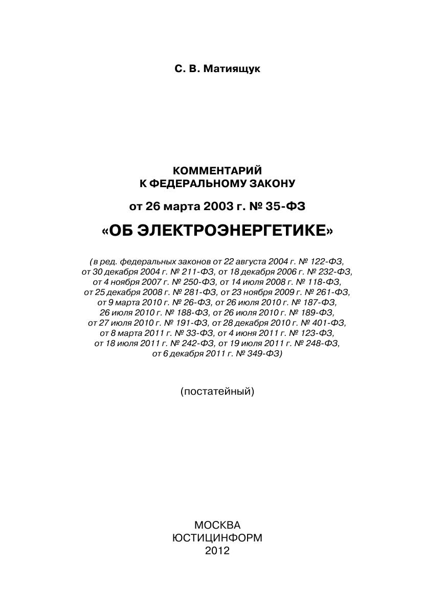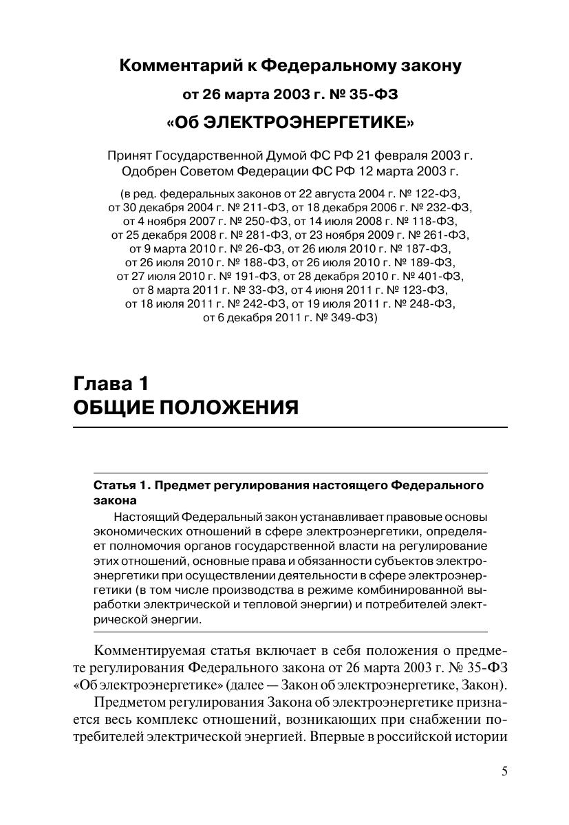 Комментарий к Федеральному закону от 26 марта 2003 г. № 35-ФЗ «Об электроэнергетике» (постатейный)