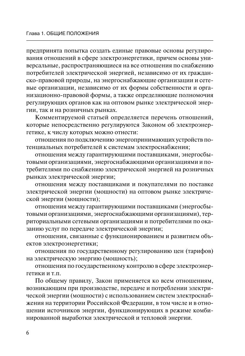 Настоящее издание представляет собой постатейный комментарий к Федеральному закону от 26 марта 2003 г. № 35-ФЗ «Об электроэнергетике», который впервые в истории российского права сформировал отрасль законодательства в сфере электроснабжения. В комментарии приводятся пояснения положений и норм Закона в его актуальной редакции, с учетом новейших изменений и действующих подзаконных актов рассматриваются примеры из практики его правоприменения. Подробно анализируется система договорных отношений на оптовом и розничном рынках электроэнергии, а также правовая модель рынка мощности. Особое место отведено становлению рынка когенерации в нашей стране, раскрываются его важнейшие особенности. Книга предназначена для студентов, аспирантов и преподавателей юридических вузов, практикующих юристов, а также всех читателей, интересующихся проблемами правового регулирования договорных отношений на рынках электрической энергии.