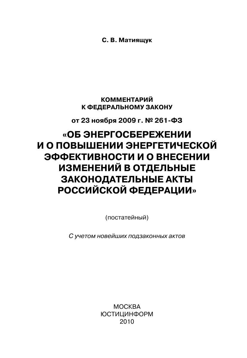 Комментарий к Федеральному закону от 23 ноября 2009 г. № 261-ФЗ «Об энергосбережении и о повышении энергетической эффективности и о внесении изменений в отдельные законодательные акты Российской Федерации» (постатейный)