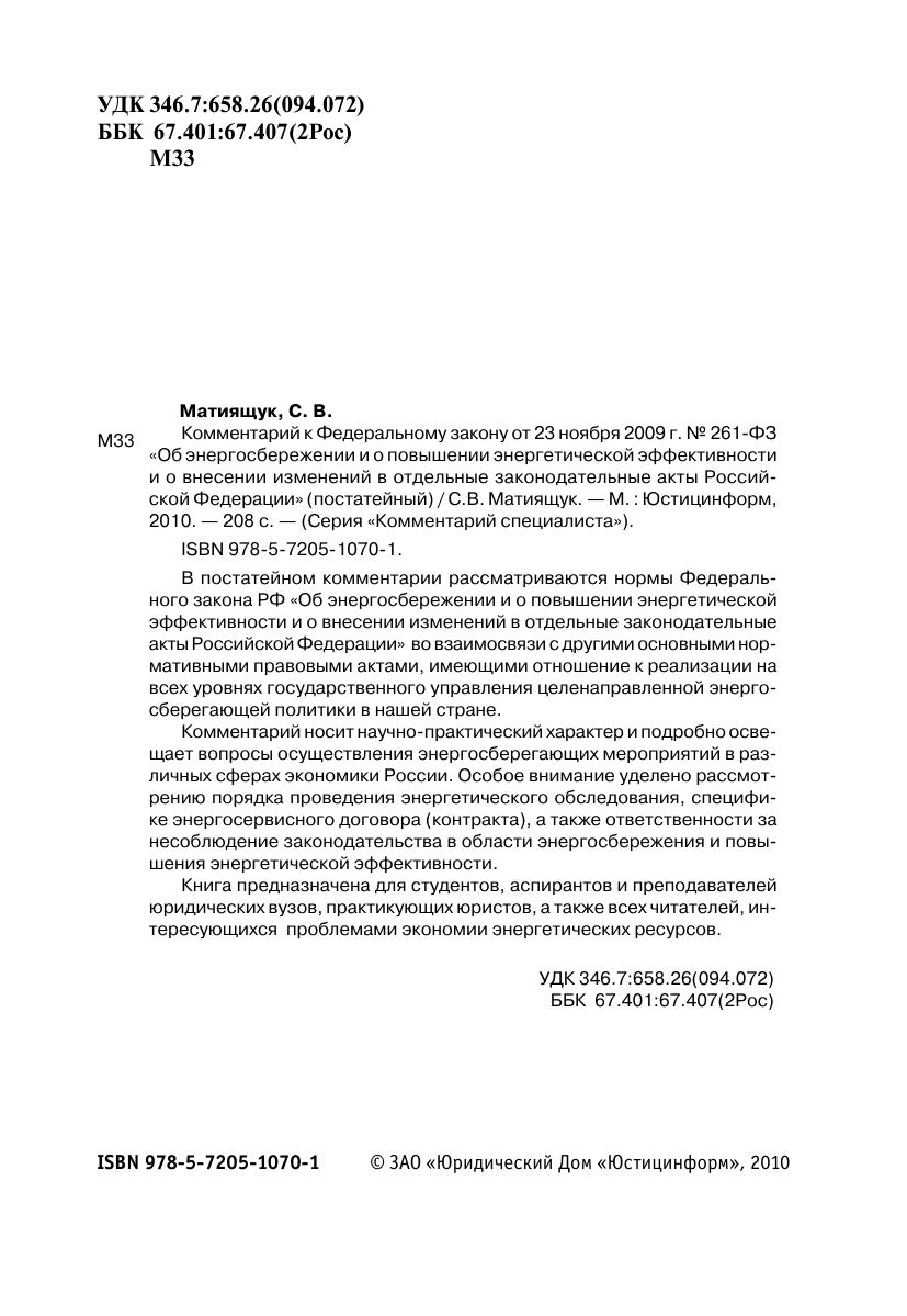 В постатейном комментарии рассматриваются нормы Федерального закона РФ «Об энергосбережении и о повышении энергетической эффективности и о внесении изменений в отдельные законодательные акты Российской Федерации» во взаимосвязи с другими основными нормативными правовыми актами, имеющими отношение к реализации на всех уровнях государственного управления целенаправленной энергосберегающей политики в нашей стране.Комментарий носит научно-практический характер и подробно освещает вопросы осуществления энергосберегающих мероприятий в различных сферах экономики России. Особое внимание уделено рассмотрению порядка проведения энергетического обследования, специфике энергосервисного договора (контракта), а также ответственности за несоблюдение законодательства в области энергосбережения и повышения энергетической эффективности. Книга предназначена для студентов, аспирантов и преподавателей юридических вузов, практикующих юристов, а также всех читателей, интересующихся проблемами экономии энергетических ресурсов