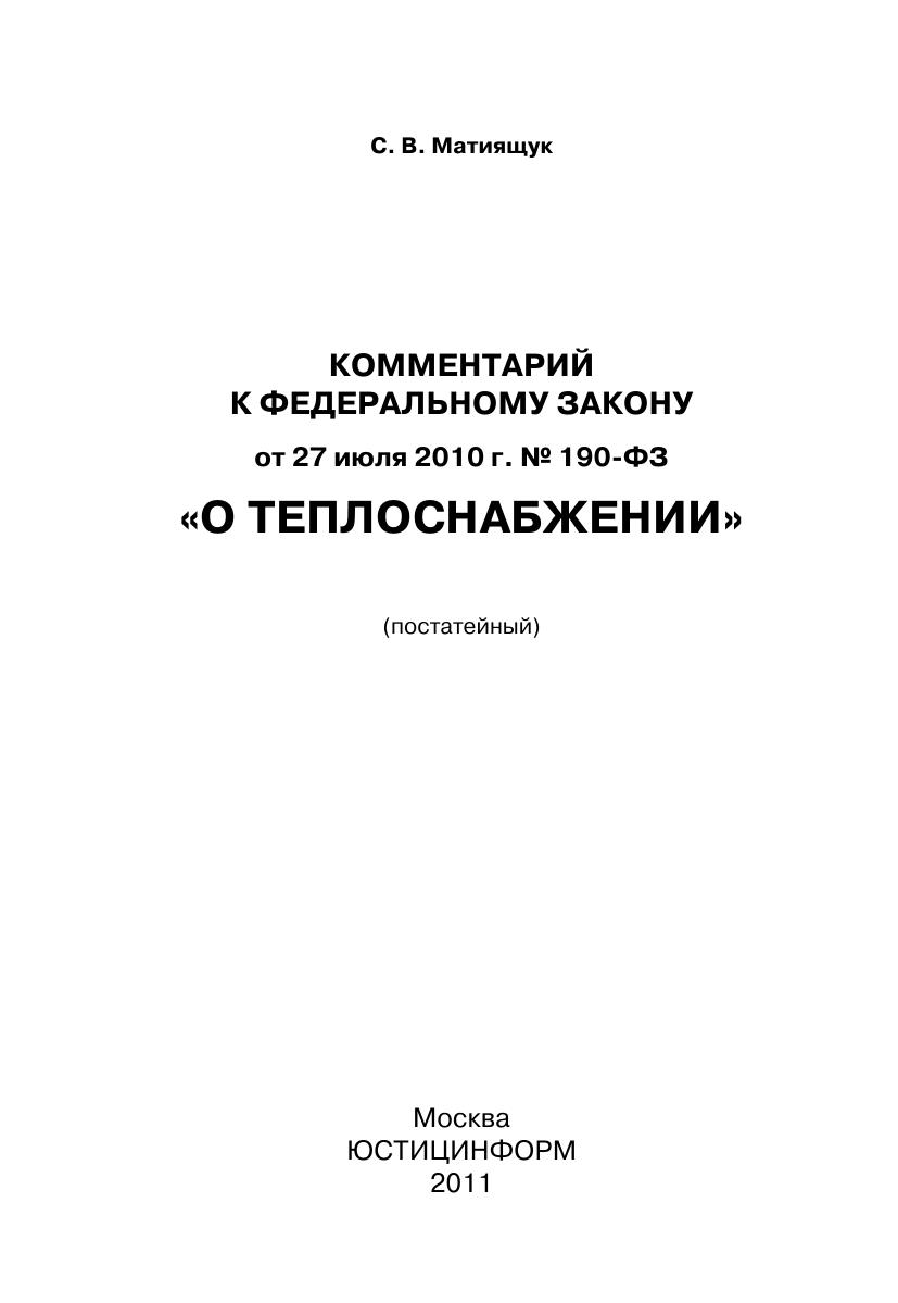 Комментарий к Федеральному закону от 27 июля 2010 г. № 190-ФЗ «О теплоснабжении» (постатейный)