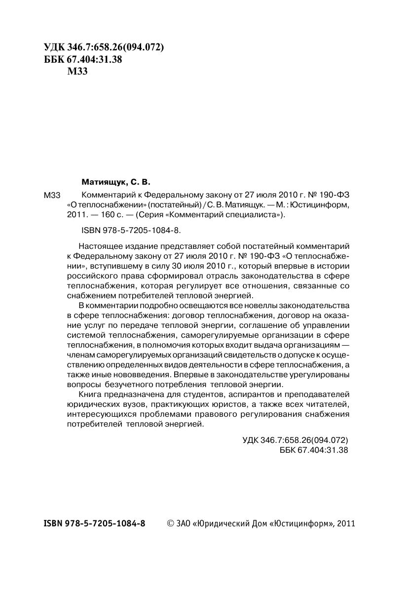 Настоящее издание представляет собой постатейный комментарий к Федеральному закону от 27 июля 2010 г. № 190-ФЗ «О теплоснабжении», вступившему в силу 30 июля 2010 г., который впервые в истории российского права сформировал отрасль законодательства в сфере теплоснабжения, которая регулирует все отношения, связанные со снабжением потребителей тепловой энергией. В комментарии подробно освещаются все новеллы законодательства в сфере теплоснабжения: договор теплоснабжения, договор на оказание услуг по передаче тепловой энергии, соглашение об управлении системой теплоснабжения, саморегулируемые организации в сфере теплоснабжения, в полномочия которых входит выдача организациям — членам саморегулируемых организаций свидетельств о допуске к осуществлению определенных видов деятельности в сфере теплоснабжения, а также иные нововведения. Впервые в законодательстве урегулированы вопросы безучетного потребления тепловой энергии.