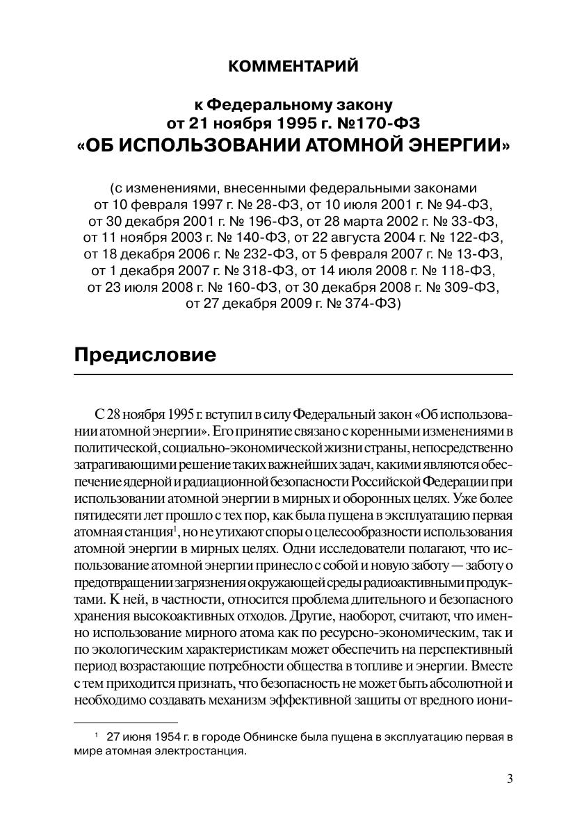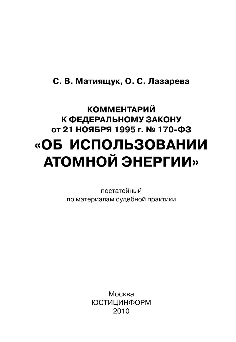 Комментарий к Федеральному закону от 21 ноября 1995 г. № 170-ФЗ Об использовании атомной энергии (постатейный)