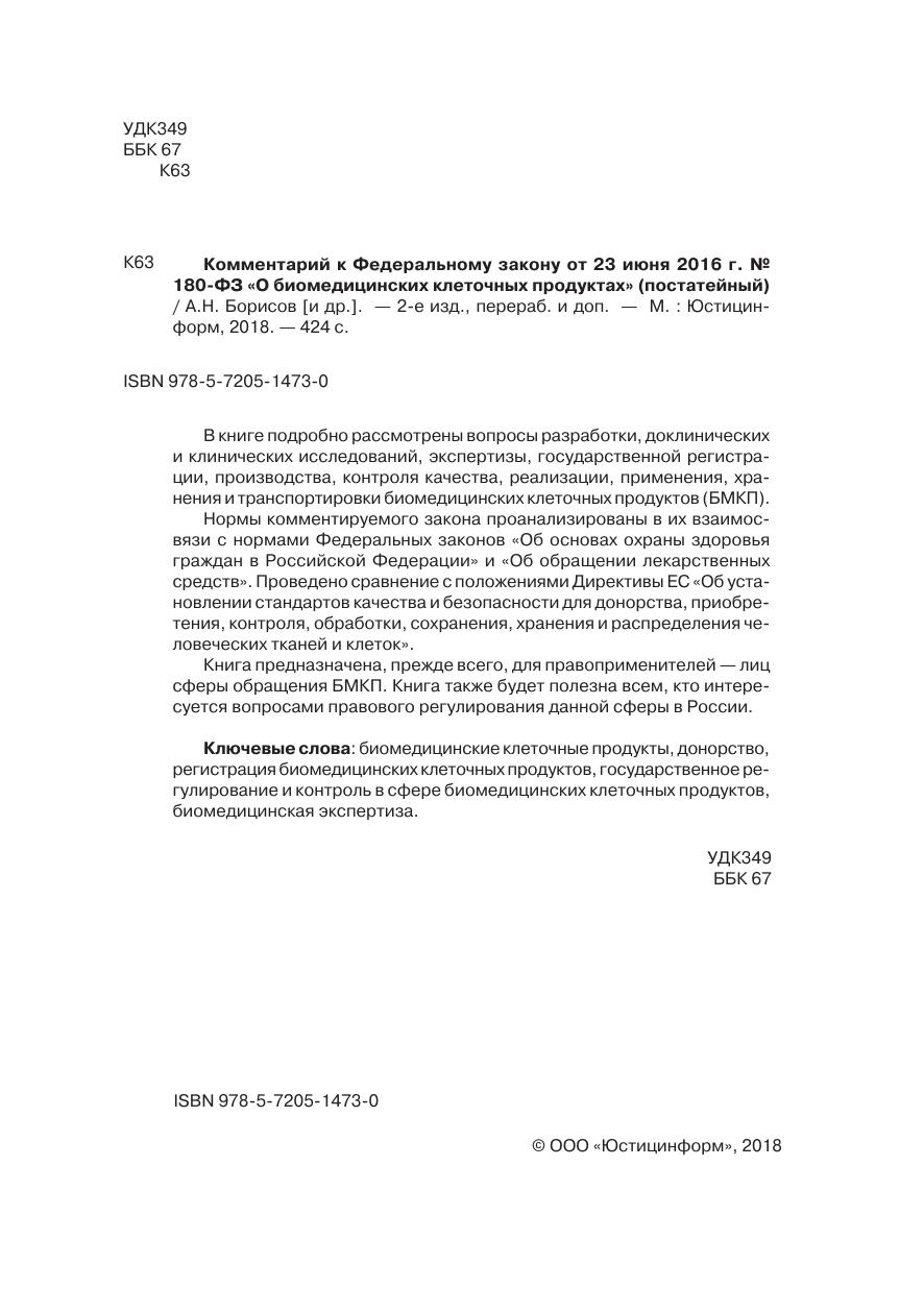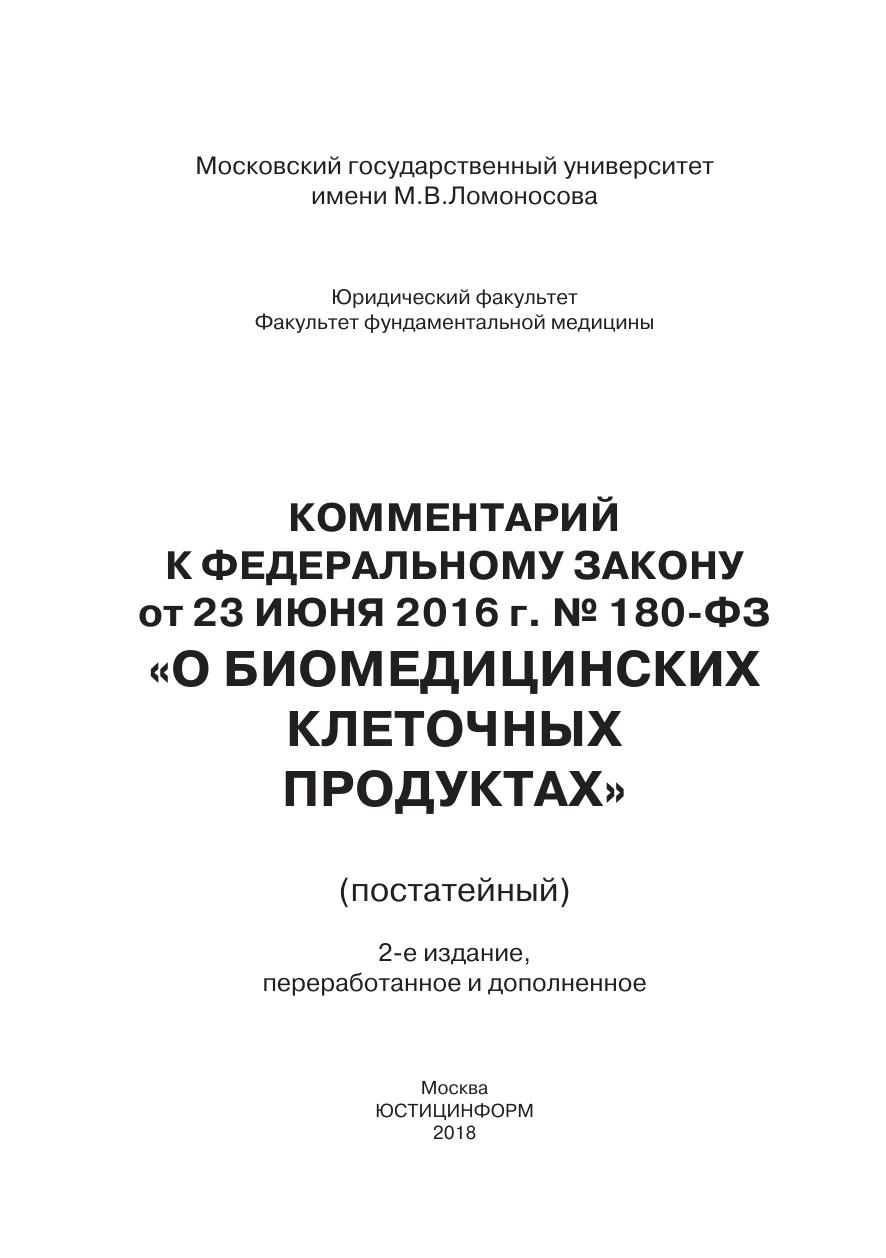 Комментарий к Федеральному закону от 23 июня 2016 г. № 180-ФЗ «О биомедицинских клеточных продуктах» (постатейный)