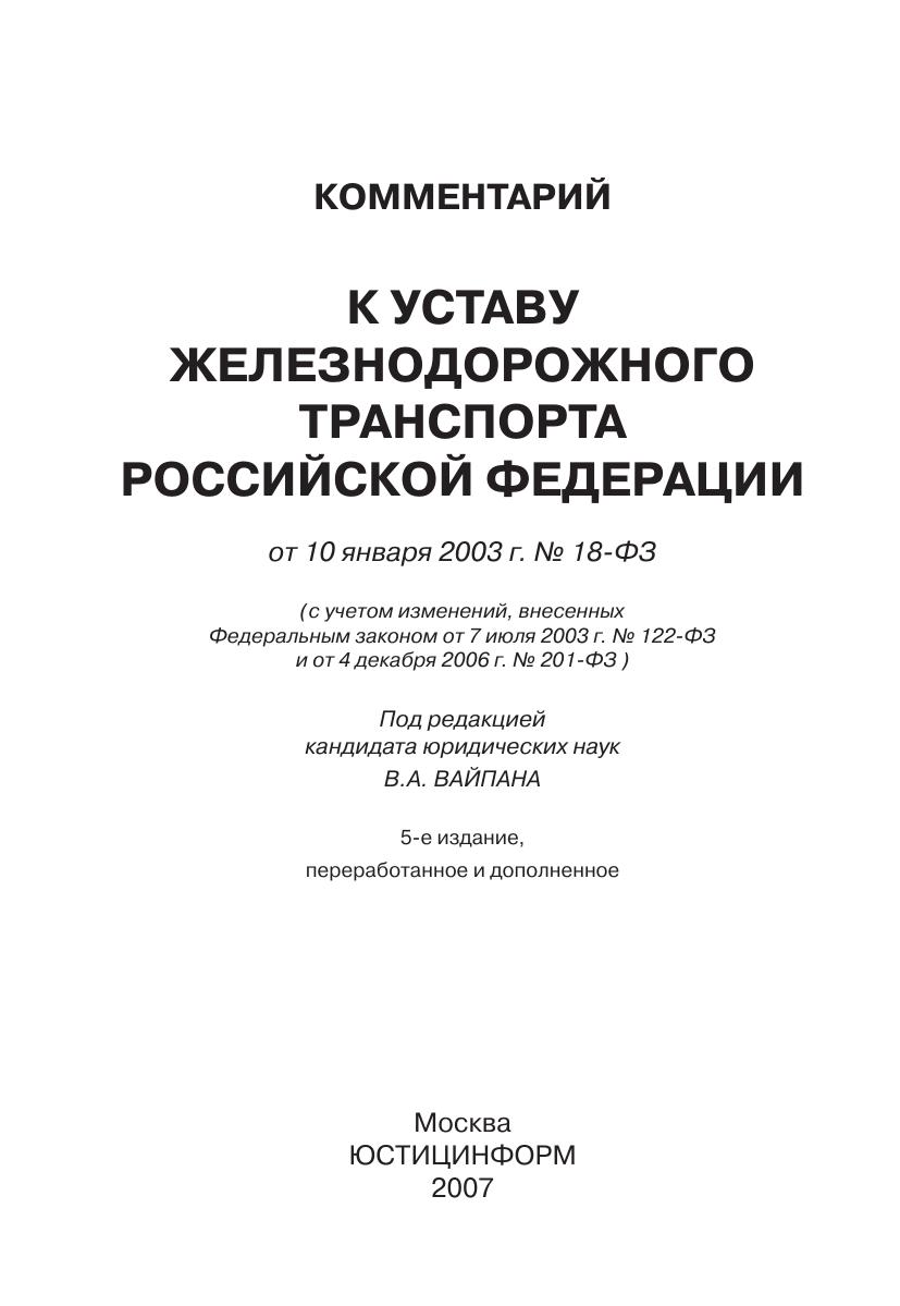 Комментарий к Уставу железнодорожного транспорта Российской Федерации