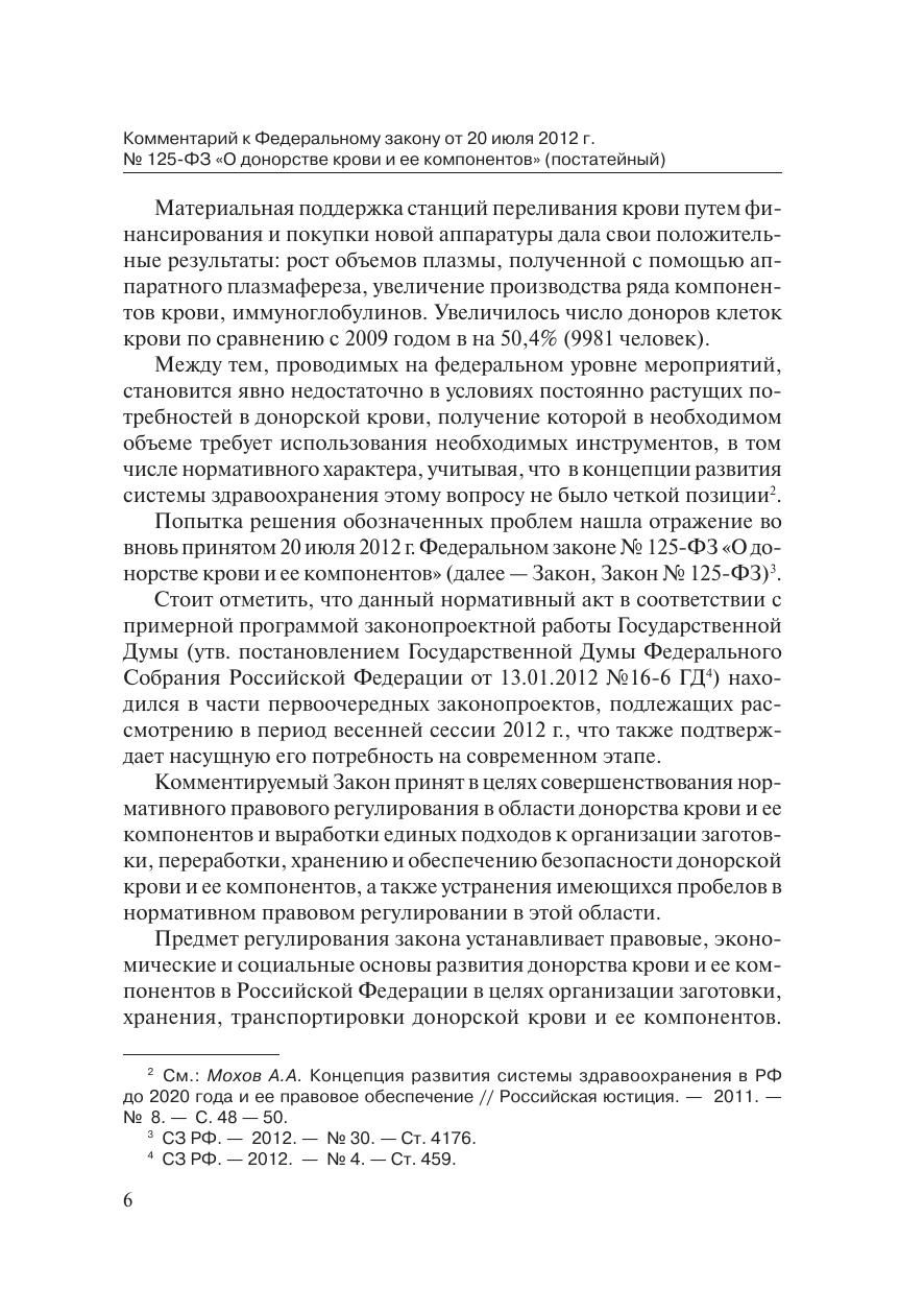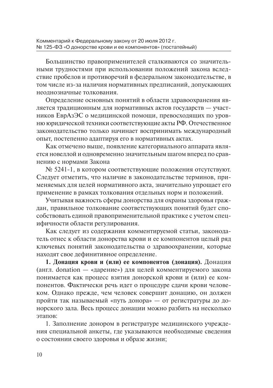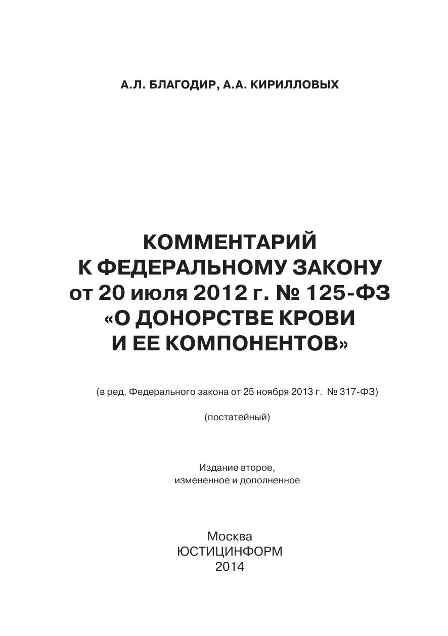 Комментарий к федеральному закону от 20 июля 2012 г. № 125-фЗ «о донорстве крови и ее компонентов» (постатейный)