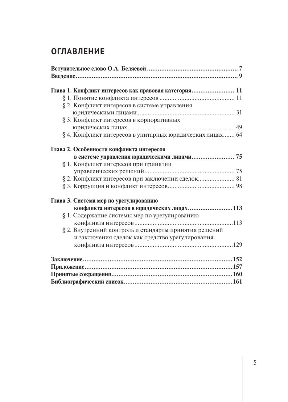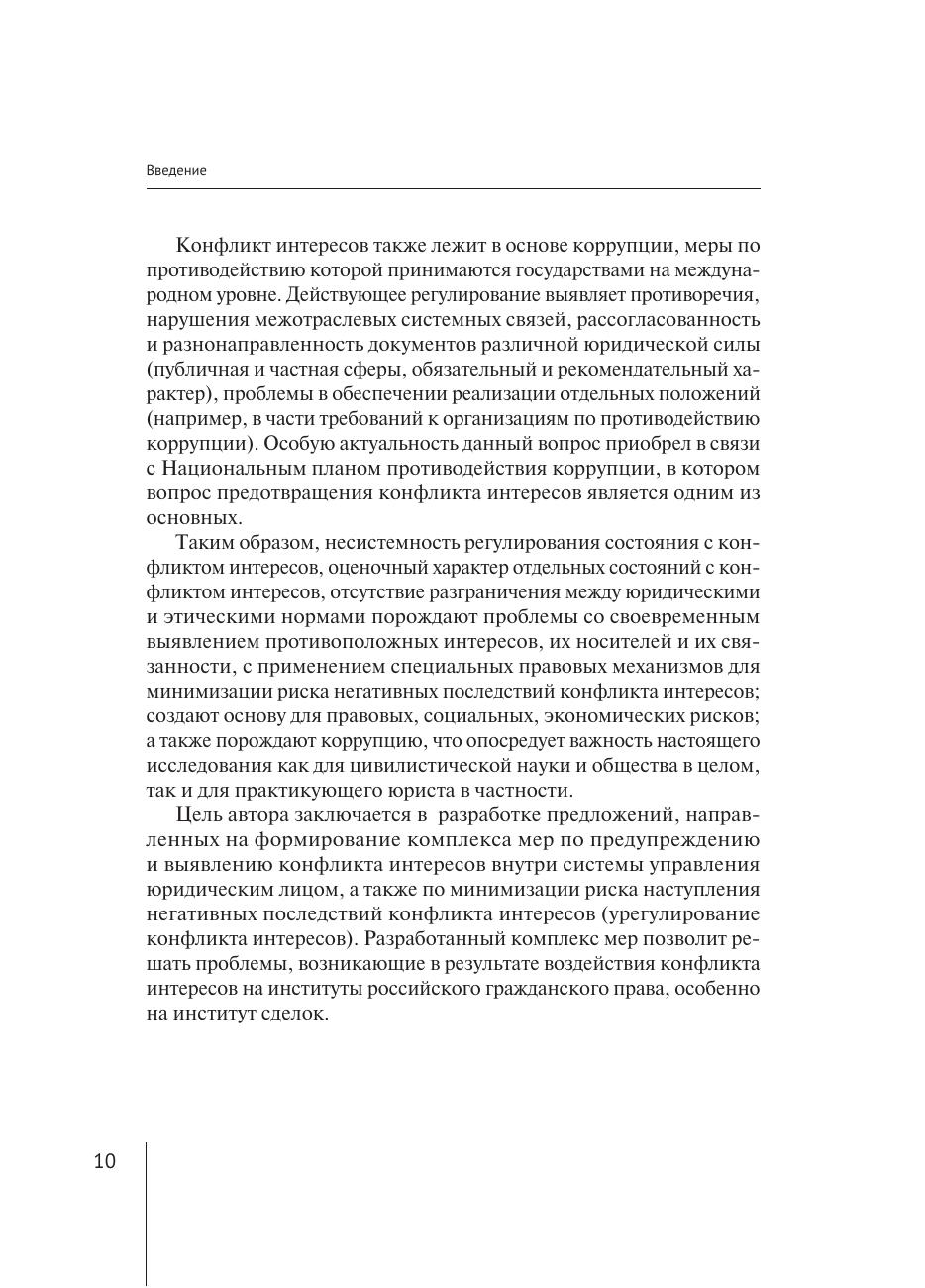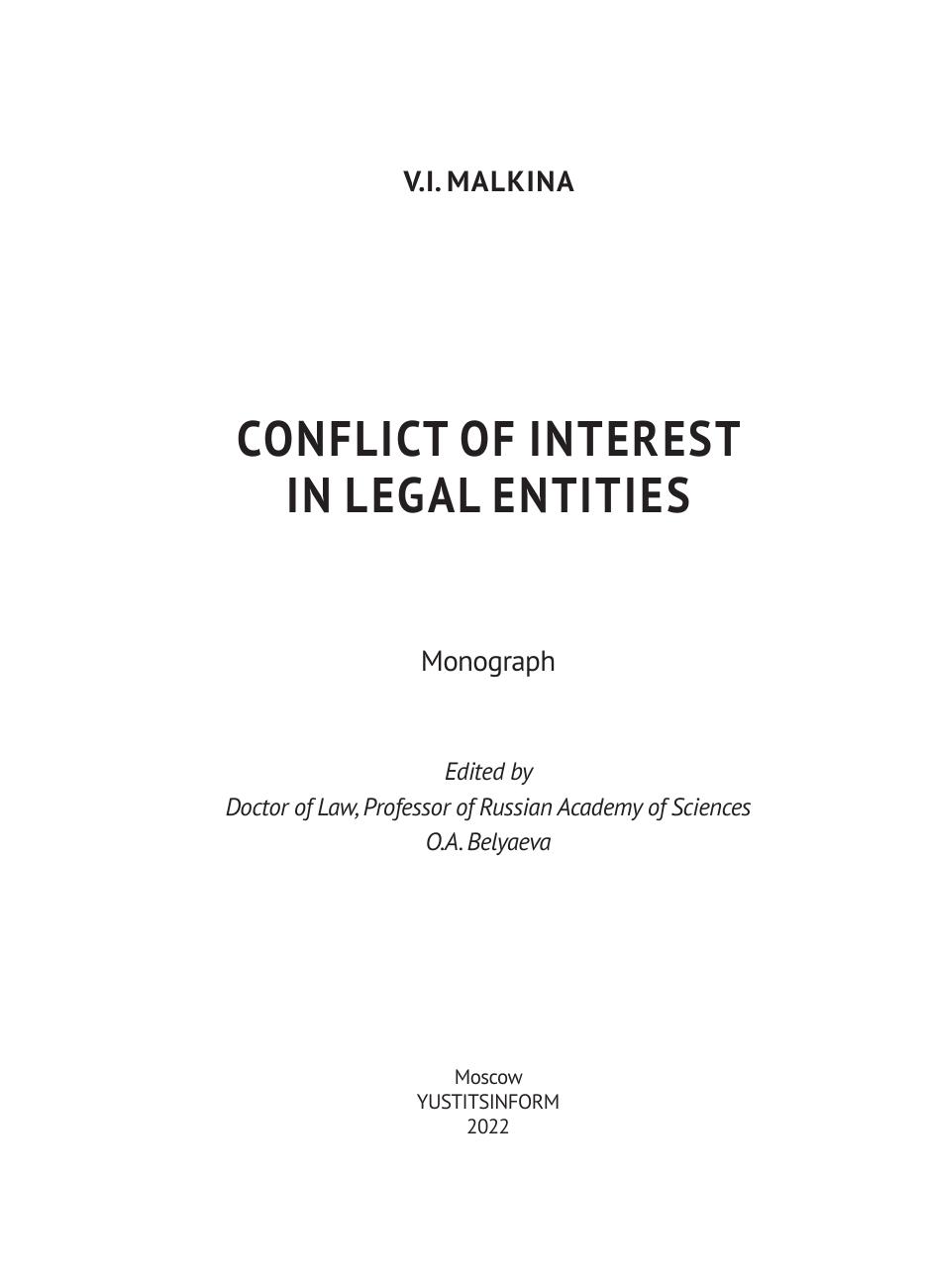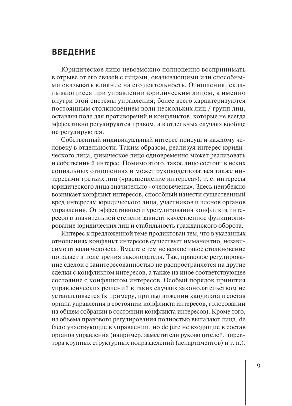 При этом конфликт интересов рассматривается как состояние есте ственное и правомерное, имманентно присущее большинству правоотно шений, и выступает в качестве основы правового регулирования разных видов сделок и управленческих решений. В монографии представлена и аргументирована система мер по урегулированию конфликта интересов в юридических лицах.