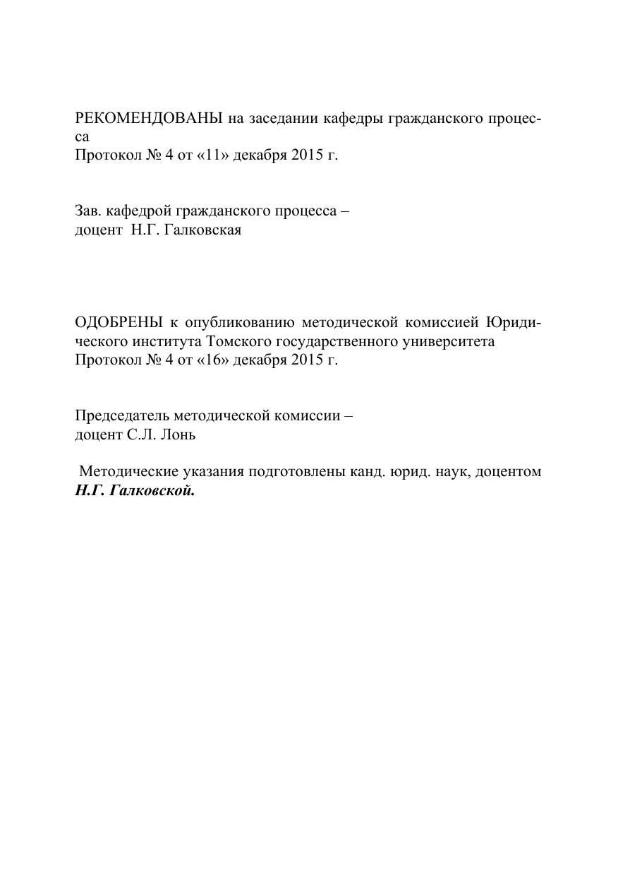 Методические указания по выполнению контрольных работ по дисциплине «Гражданский процесс» для студентов 4-го курса заочного отделения ЮИ ТГУ. Бакалавриат