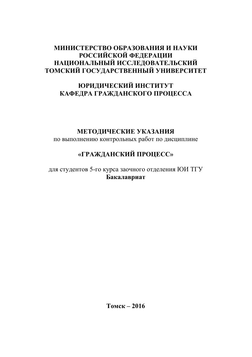 Методические указания по выполнению контрольных работ по дисциплине «Гражданский процесс» для студентов 5-го курса заочного отделения ЮИ ТГУ. Бакалавриат