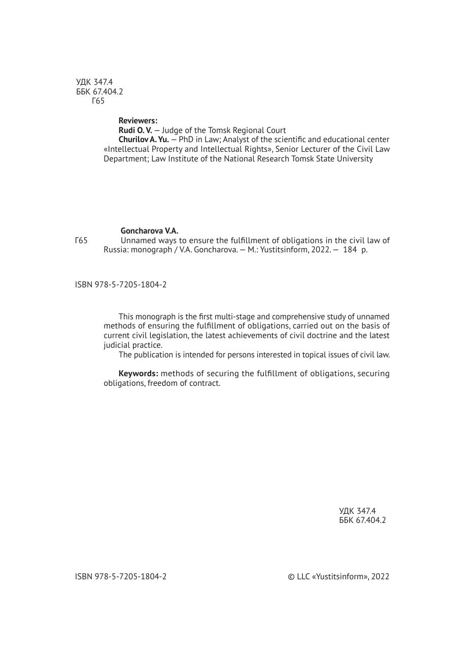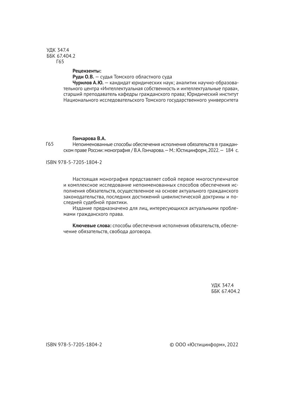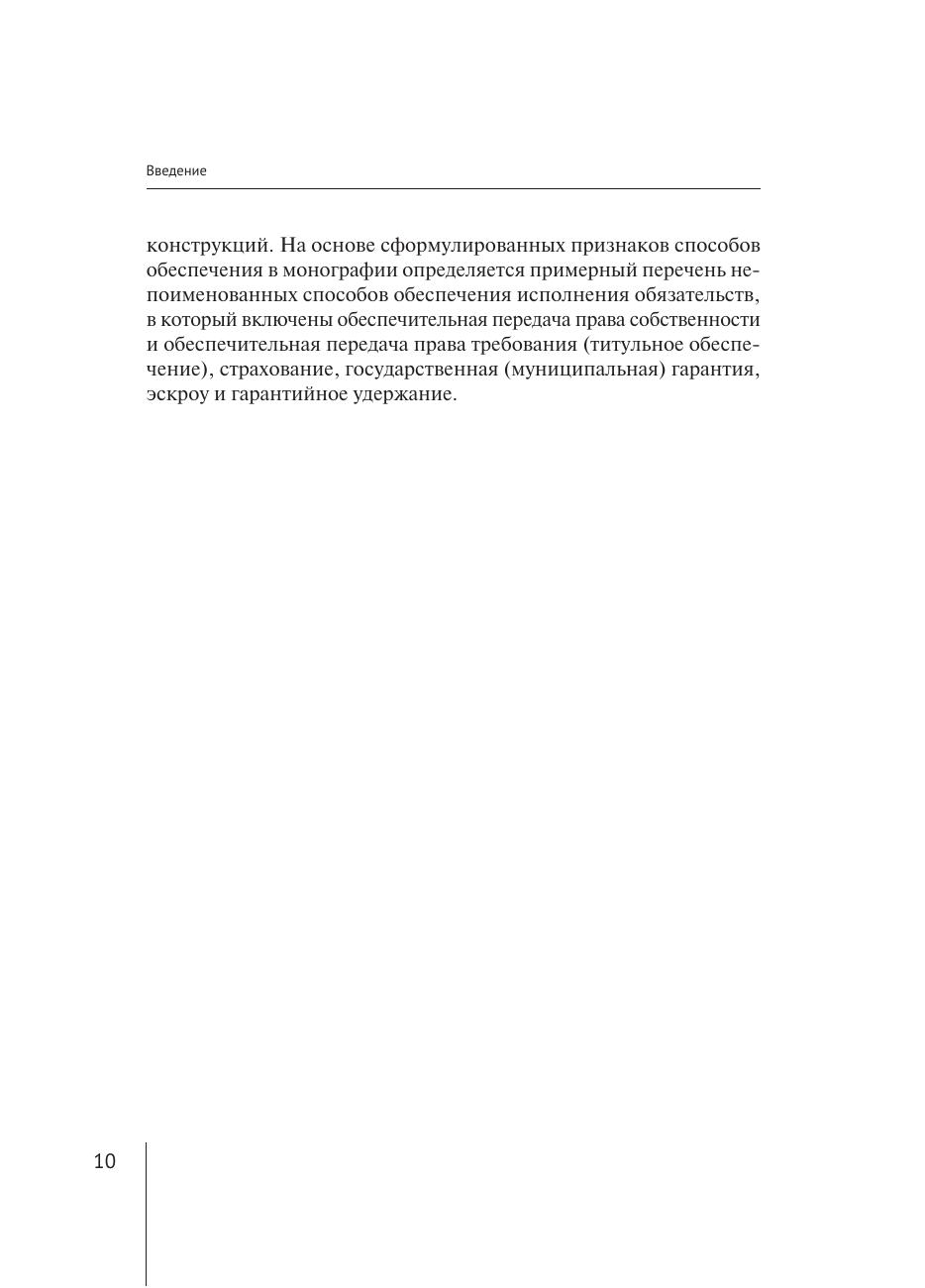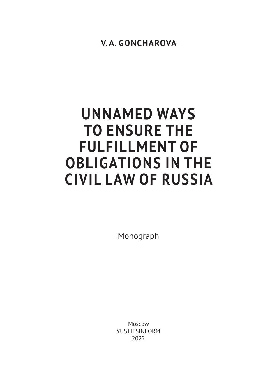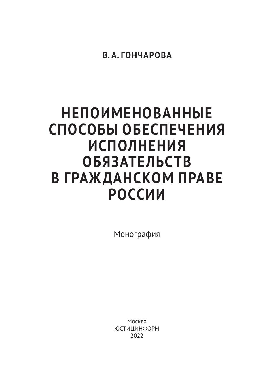 Настоящая монография представляет собой первое многоступенчатое и комплексное исследование непоименованных способов обеспечения исполнения обязательств, осуществленное на основе актуального гражданского законодательства, последних достижений цивилистической доктрины и последней судебной практики. Издание предназначено для лиц, интересующихся актуальными проблемами гражданского права.