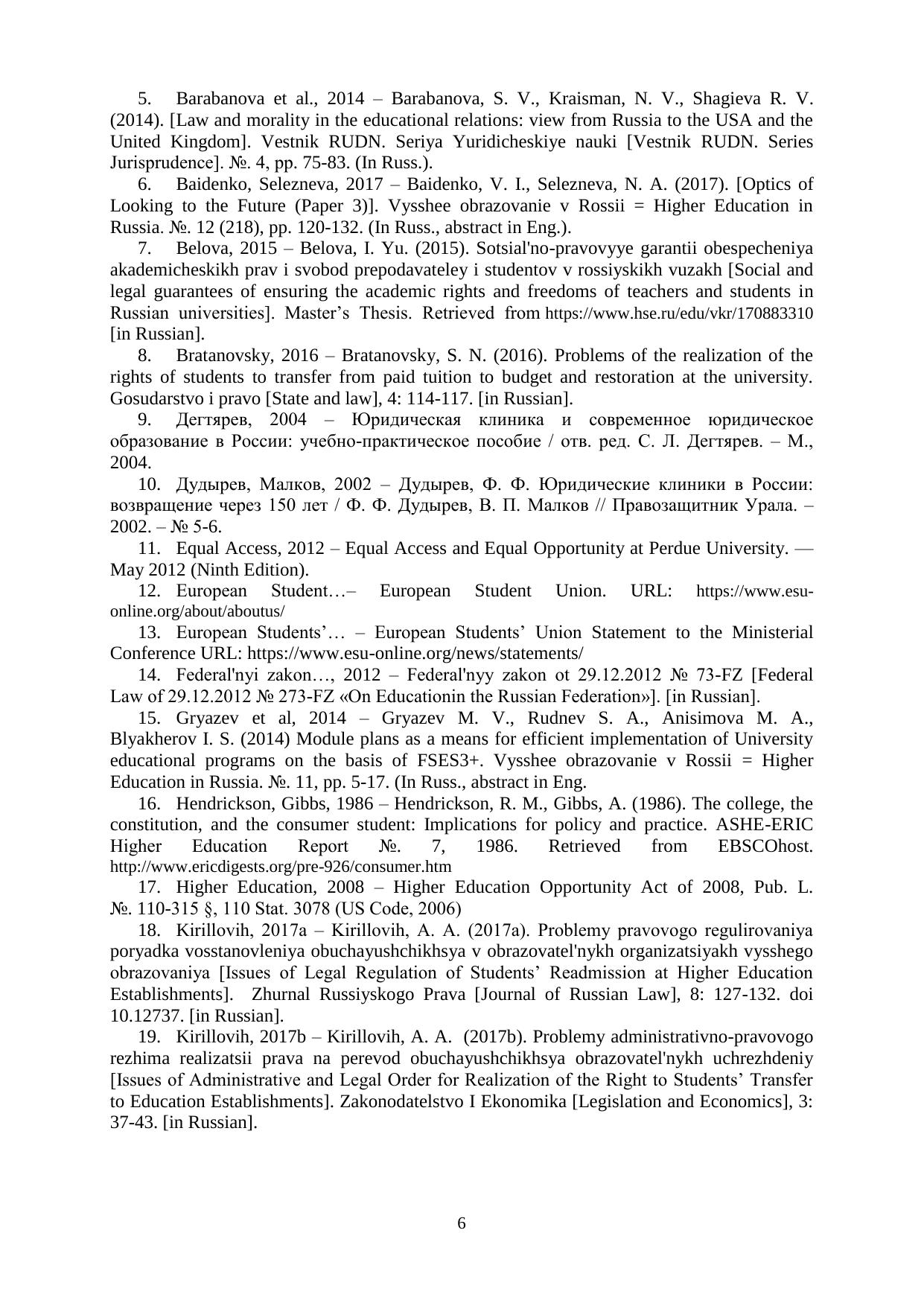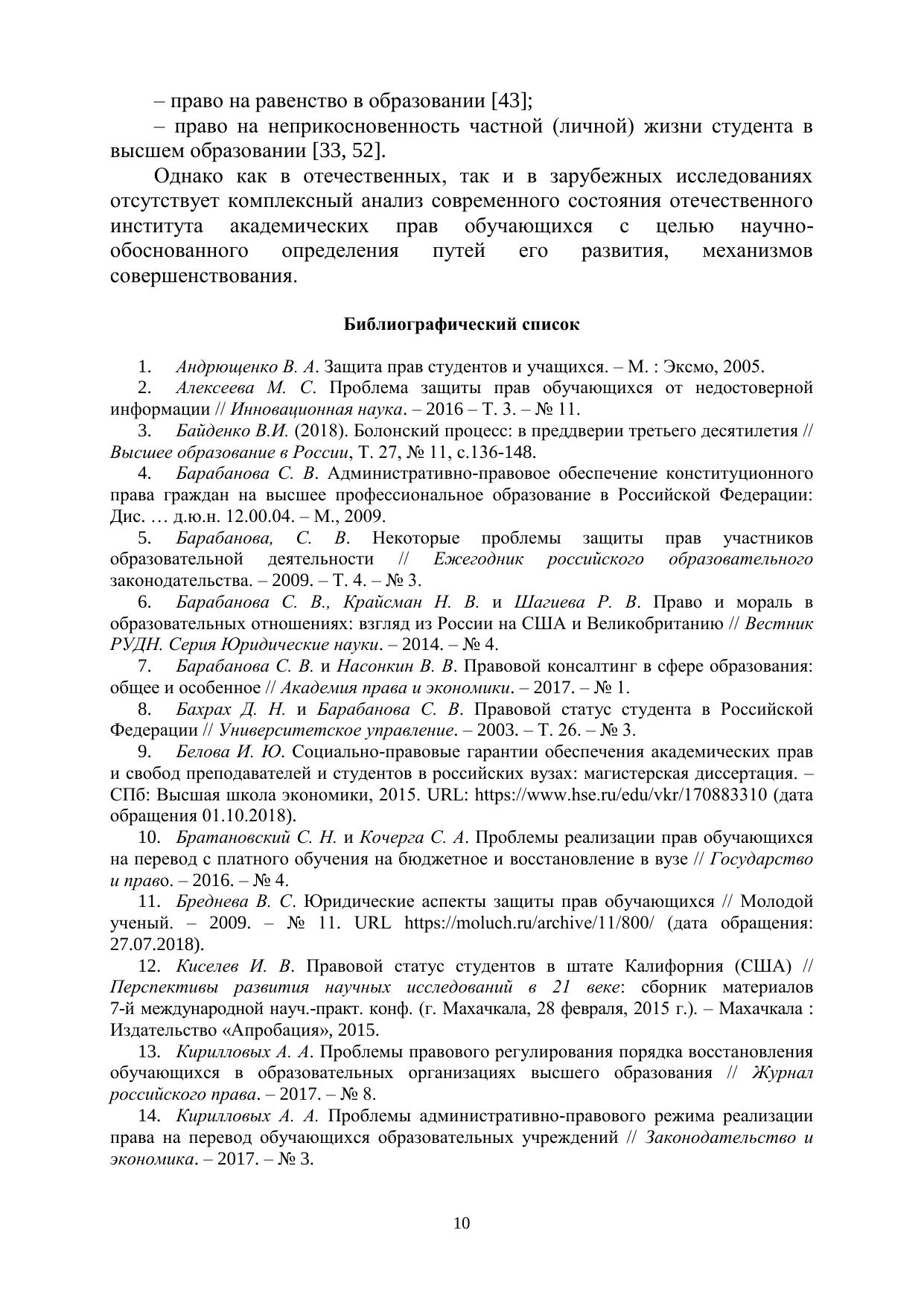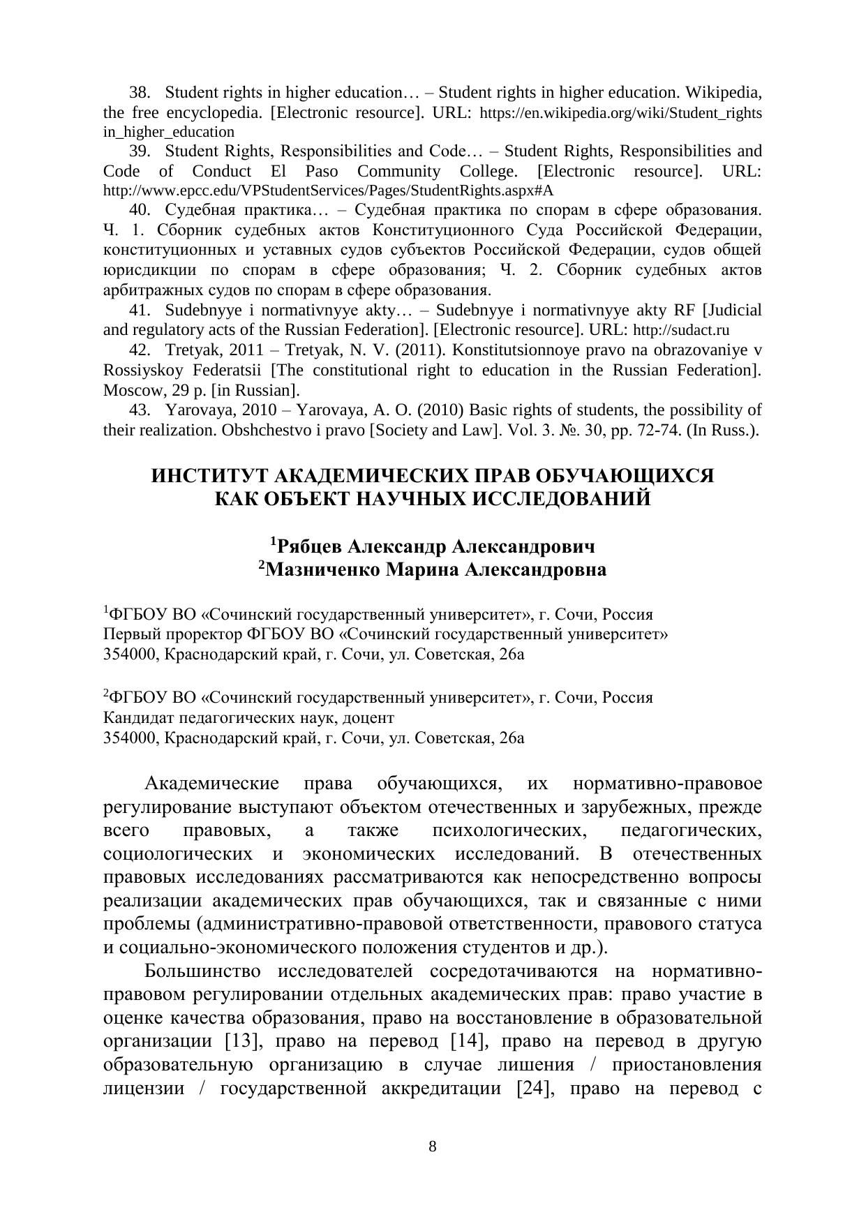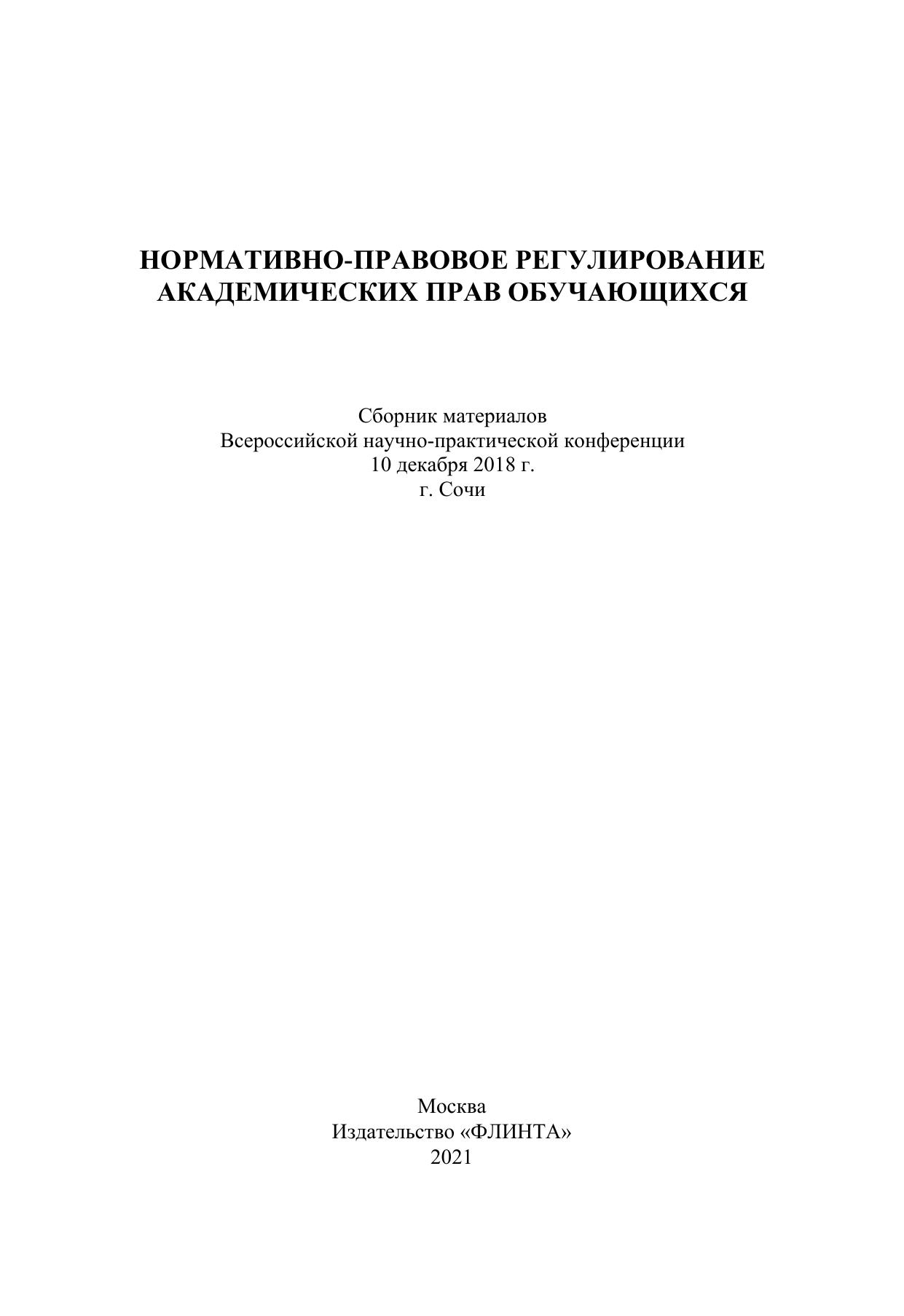 Включает статьи и тезисы, рассматривающие проблемы реализации института прав и обязанностей обучающихся в Российской Федерации и на опыте зарубежных стран.