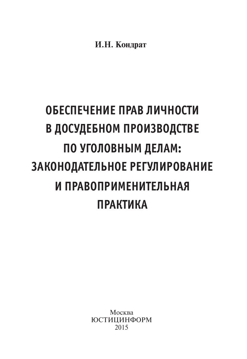 Обеспечение прав личности в досудебномпроизводстве по уголовным делам: законодательное регулирование и правоприменительная практика: монография