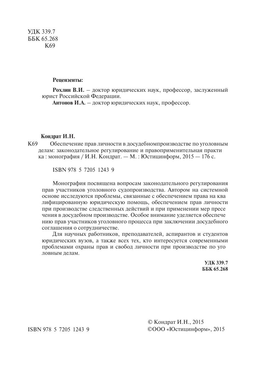 Монография посвящена вопросам законодательного регулирования прав участников уголовного судопроизводства. Автором на системной основе исследуются проблемы, связанные с обеспечением права на квалифицированную юридическую помощь, обеспечением прав личности при производстве следственных действий и при применении мер пресечения в досудебном производстве. Особое внимание уделяется обеспечению прав участников уголовного процесса при заключении досудебногосоглашения о сотрудничестве. Для научных работников, преподавателей, аспирантов и студентов юридических вузов, а также всех тех, кто интересуется современными проблемами охраны прав и свобод личности при производстве по уголовным делам