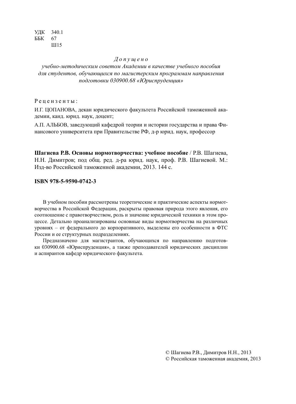 Издательство: РТА (Российская таможенная академия)