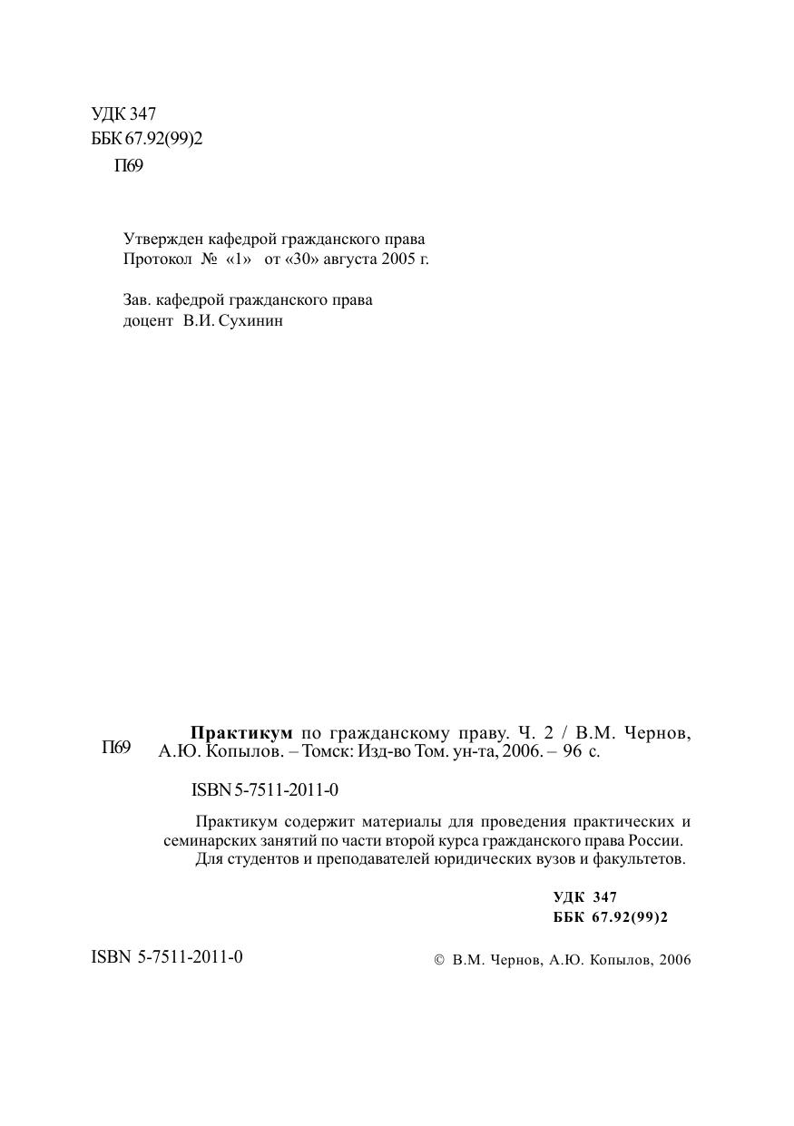 Практикум содержит материалы для проведения практических и семинарских занятий по части второй курса гражданского права России. Для студентов и преподавателей юридических вузов и факультетов.