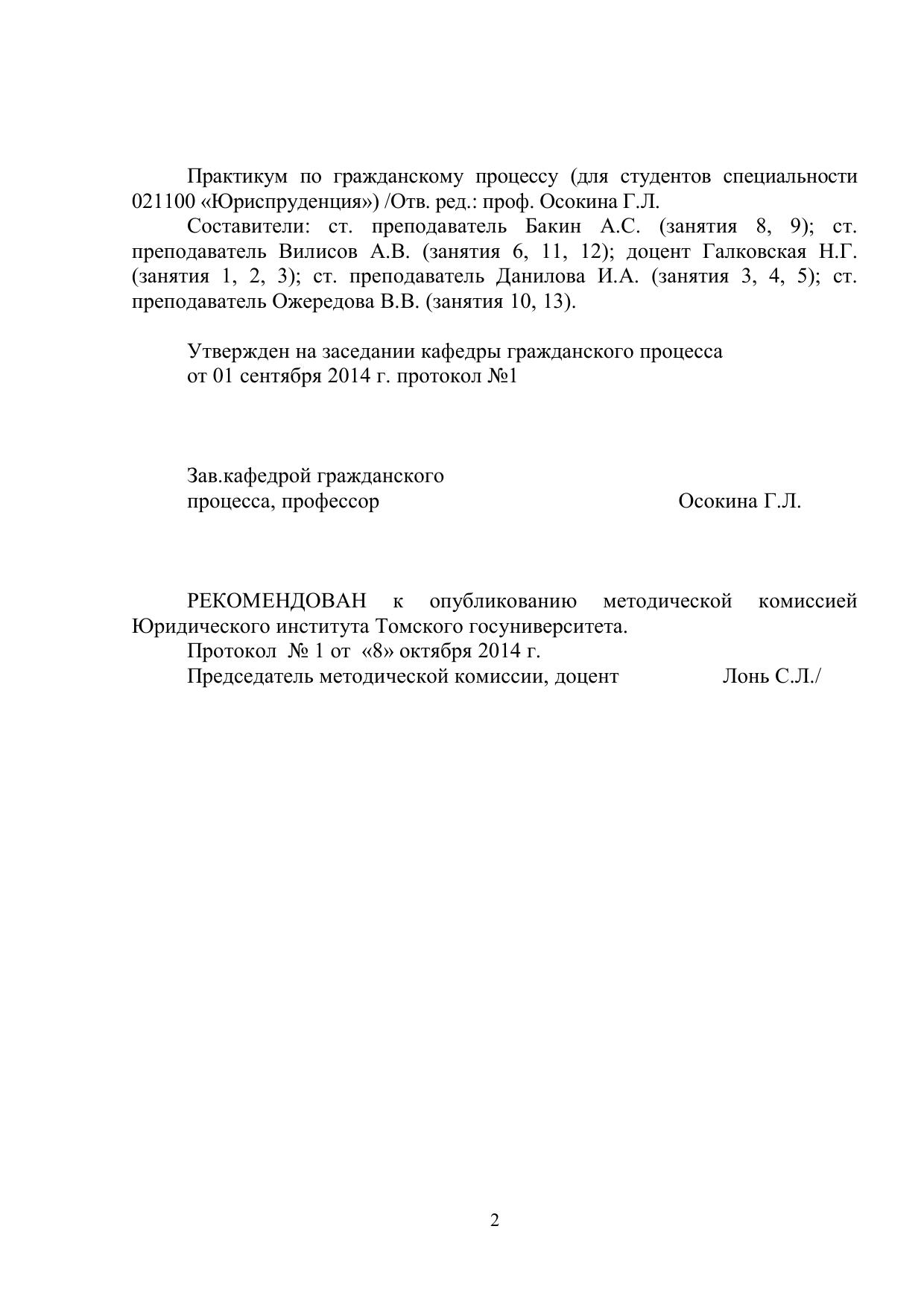 Практикум по гражданскому процессу (для студентов специальности 021100 «Юриспруденция»)
