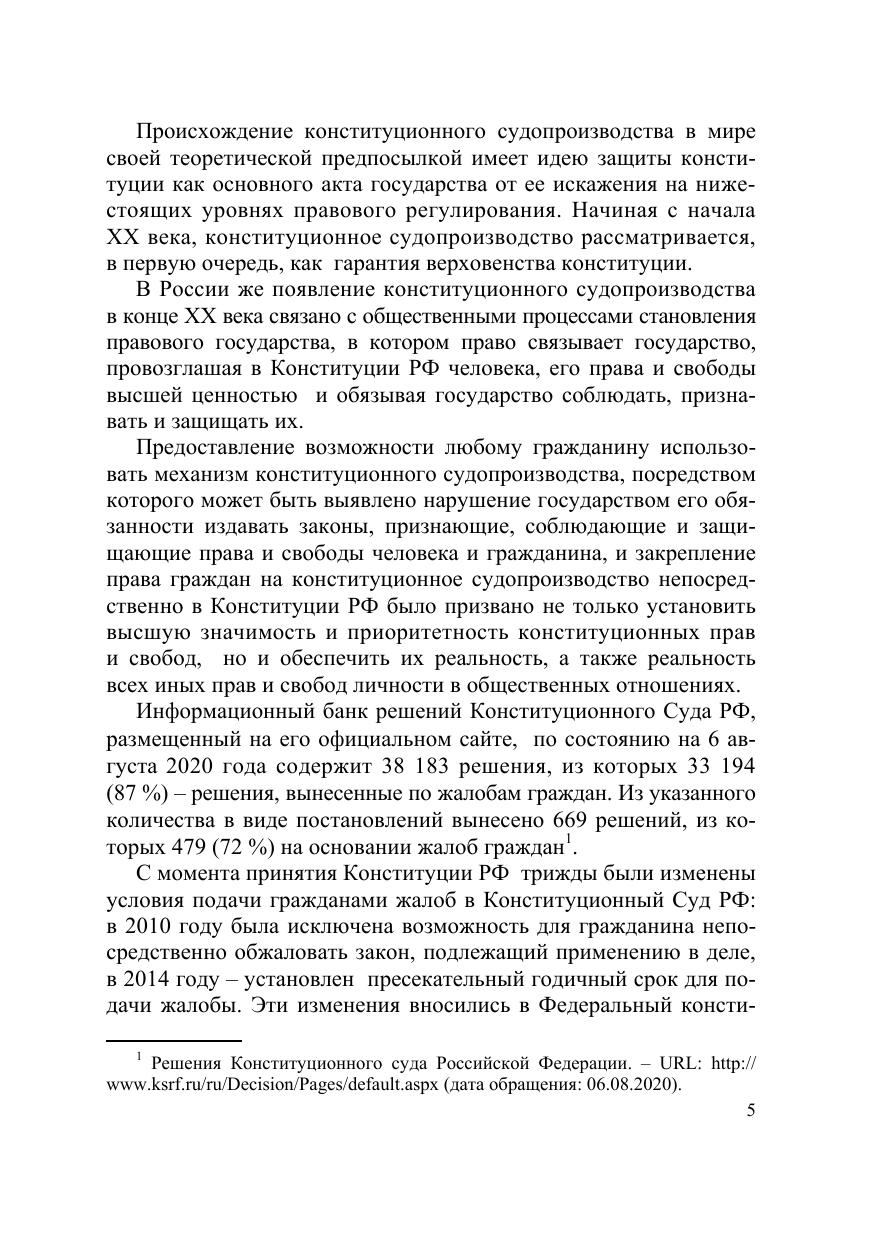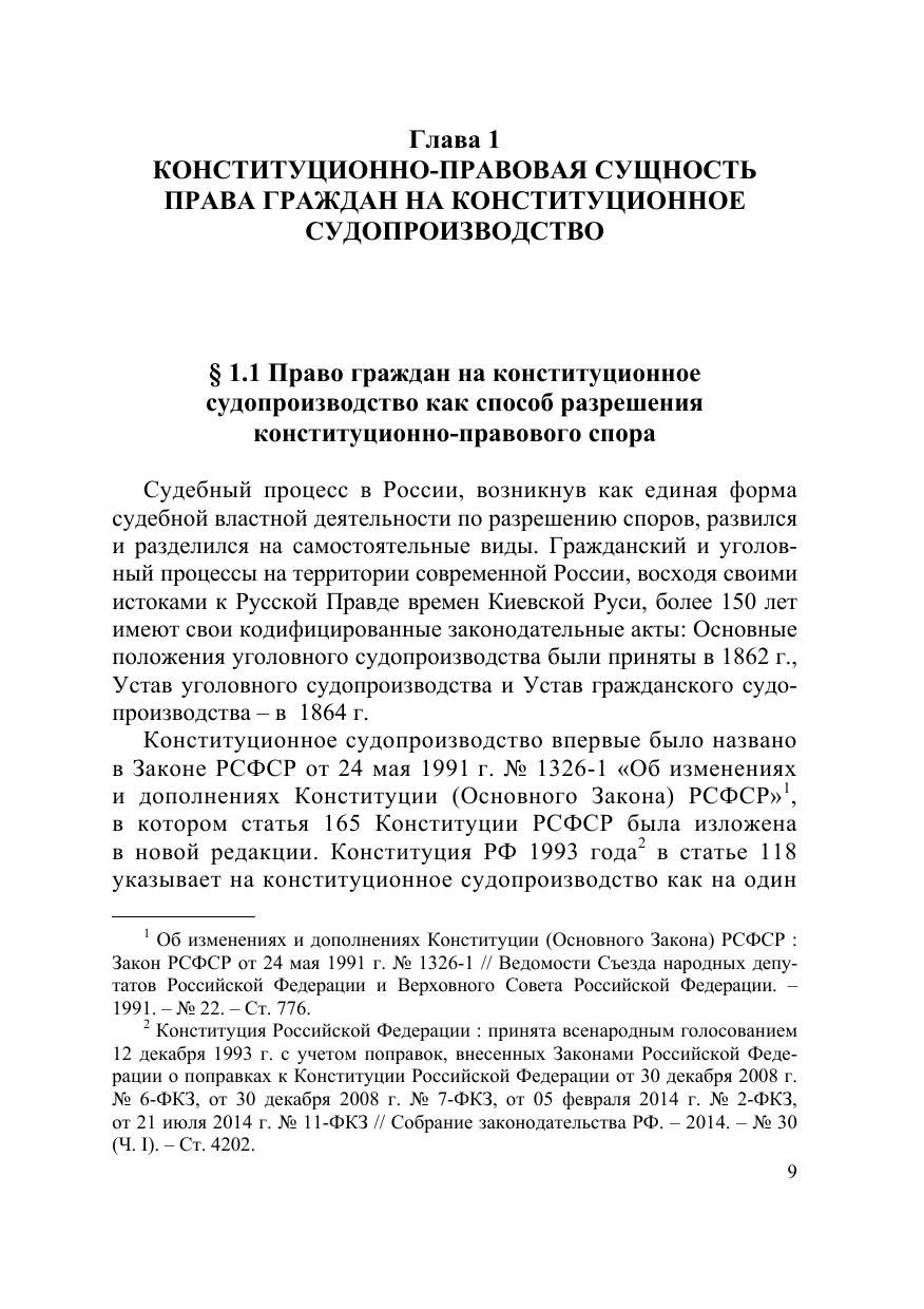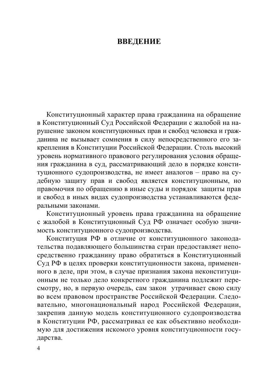 Настоящая монография содержит результаты исследования конституционноправовой сущности права граждан на конституционное судопроизводство и особенностей его реализации гражданами в Российской Федерации. Исследуемое право рассматривается как самостоятельное субъективное право, имеющее свое место в системе действующих прав и свобод, и предназначенное для разрешения конституционно-правовых споров с участием граждан. Исходя из изложенной в работе концепции права граждан на конституционное судопроизводства сформулированы предложения по совершенствованию правового регулирования исследуемого права. Для государственных и муниципальных служащих, депутатов, судей, научных работников, преподавателей, аспирантов и студентов юридических вузов и всех, кто интересуется проблемами конституционного судопроизводства.