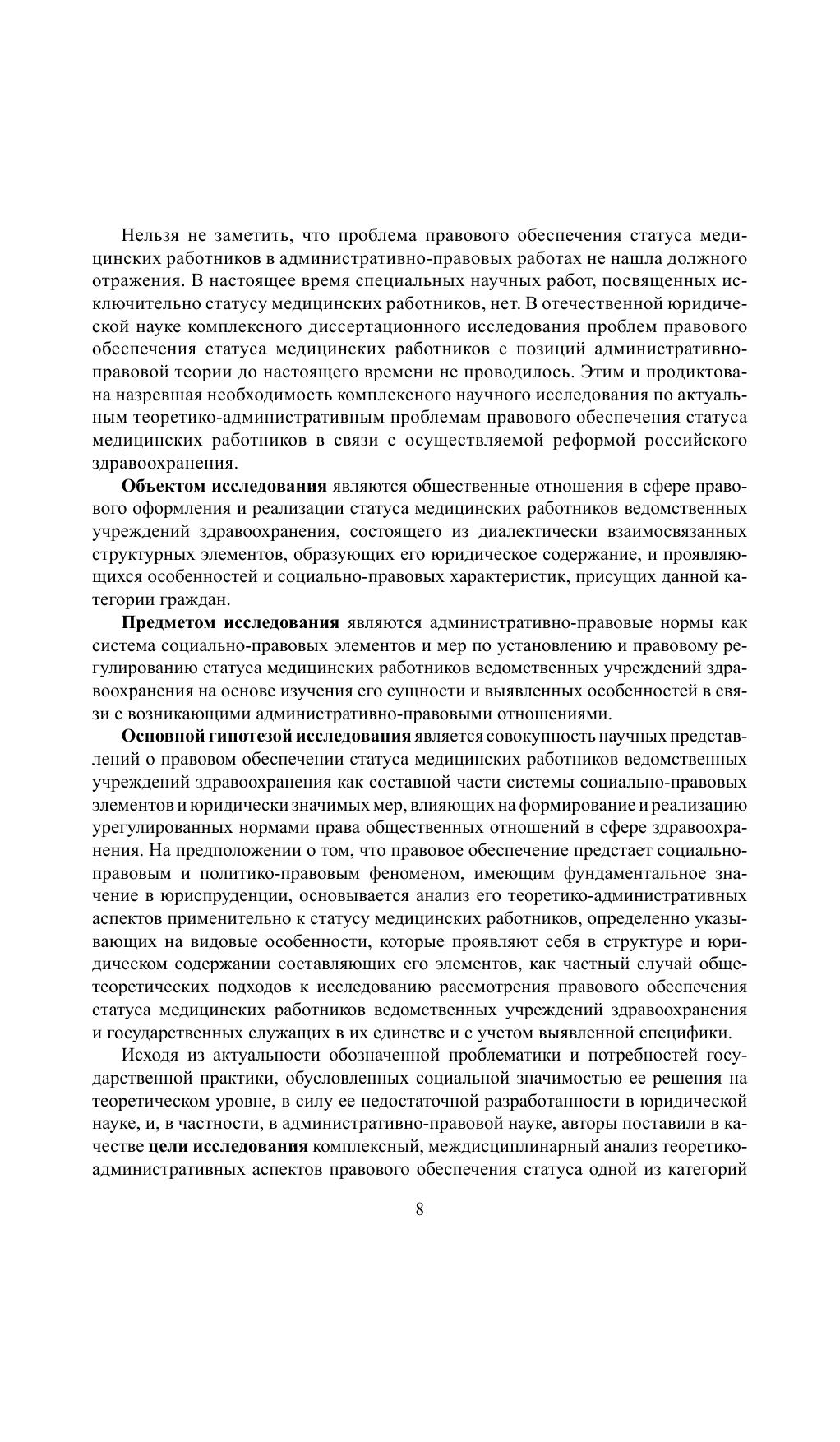 Правовое обеспечение статуса медицинских работников ведомственных учреждений здравоохранения (теоретико-административные аспекты): монография