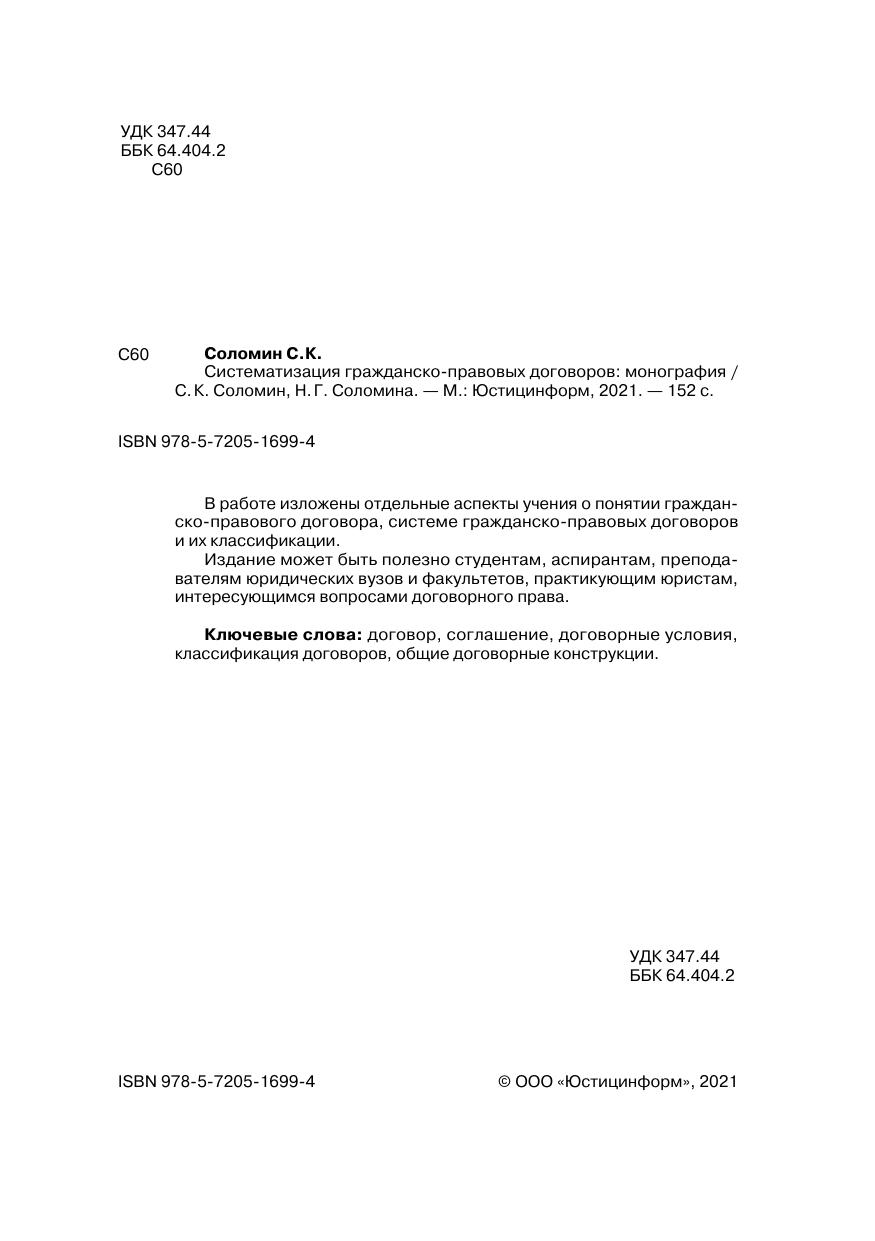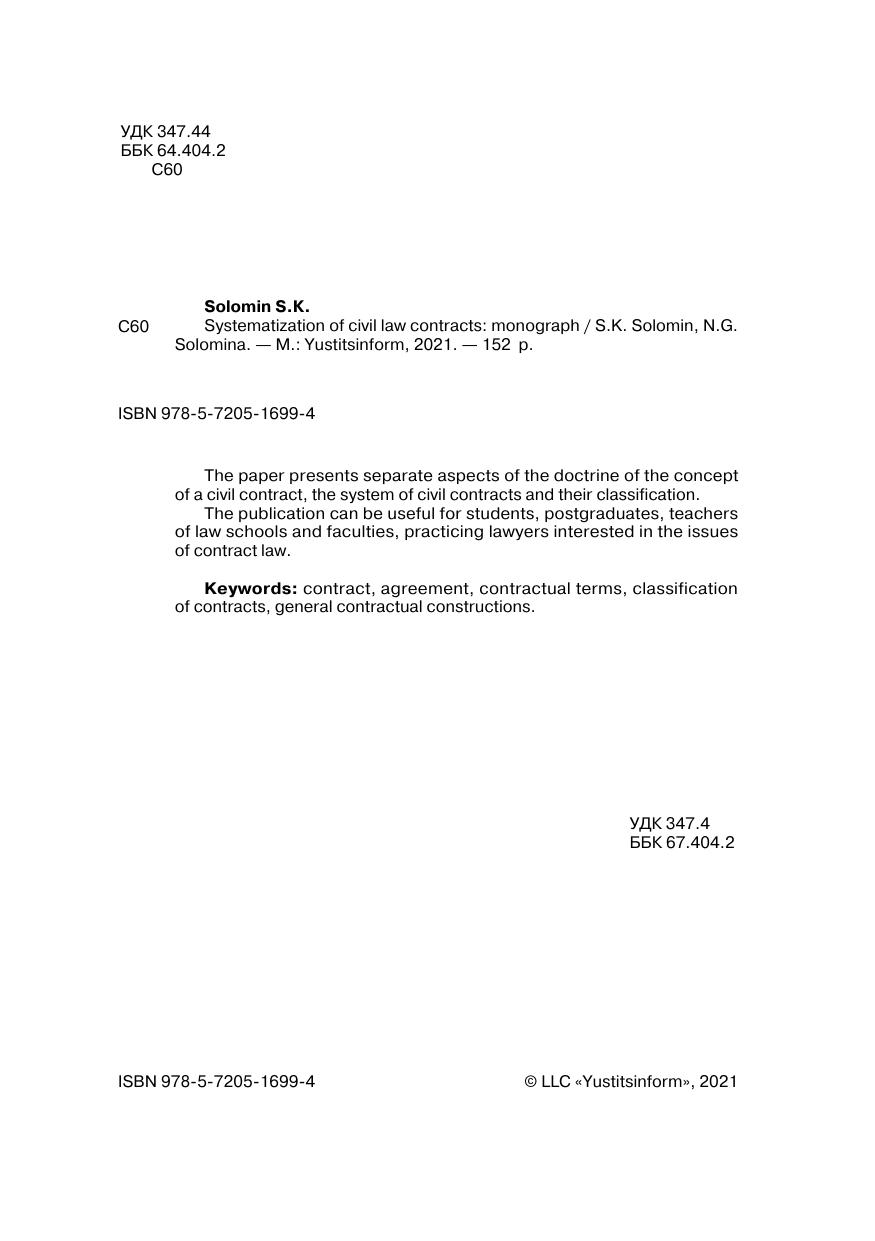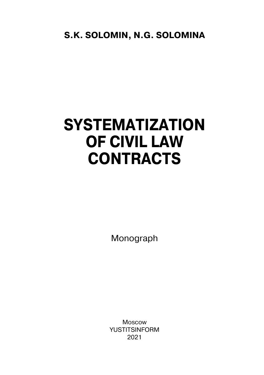 В работе изложены отдельные аспекты учения о понятии гражданско-правового договора, системе гражданско-правовых договоров и их классификации. Издание может быть полезно студентам, аспирантам, преподавателям юридических вузов и факультетов, практикующим юристам, интересующимся вопросами договорного права.