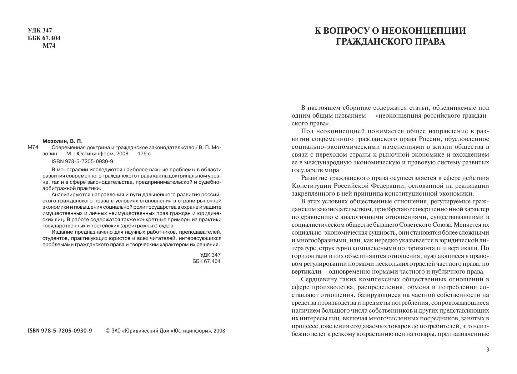 Современная доктрина и гражданское законодательство