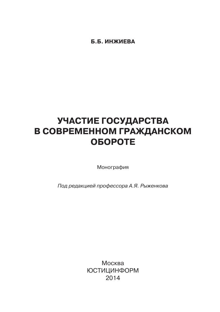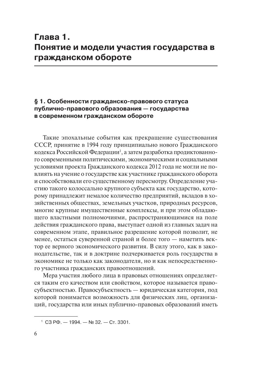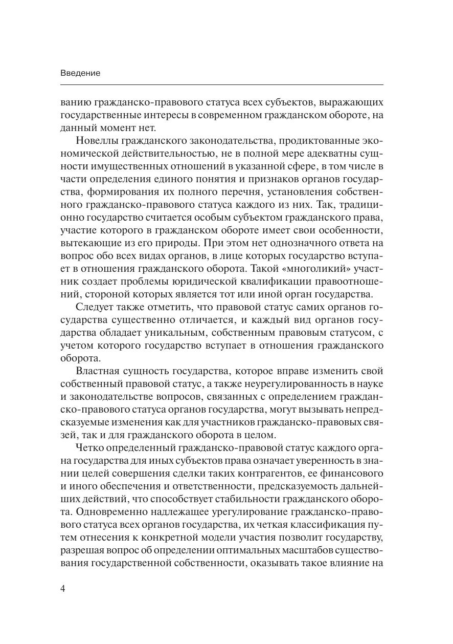 Монография рассчитана на широкую читательскую аудиторию —студентов, аспирантов, преподавателей, должностных лиц органов го-сударственной власти и местного самоуправления, представителейправозащитных объединений, иных заинтересованных читателей, по-скольку проблемы участия государства в гражданском обороте в ус-ловиях обретения им новой социальной сущности касаются интересоввсех граждан России, а также лиц, обладающих статусом юридическо-го лица или без такового.В работе исследуются современные модели участия государства вгражданском обороте, анализируются гражданско-правовые статусывсех субъектов, посредством деятельности которых государство реа-лизует свои права, обязанности и несет ответственность в гражданскомобороте, а также предложена концепция повышения эффективности де-ятельности органов государства, позволяющая оказывать оптимальноевлияние государства на гражданский оборот, обеспечивающее функ-ционирование рыночной экономики и выполнение других социальныхфункций государства